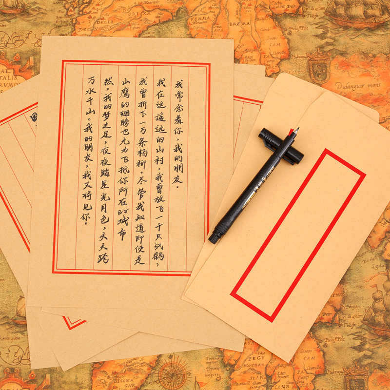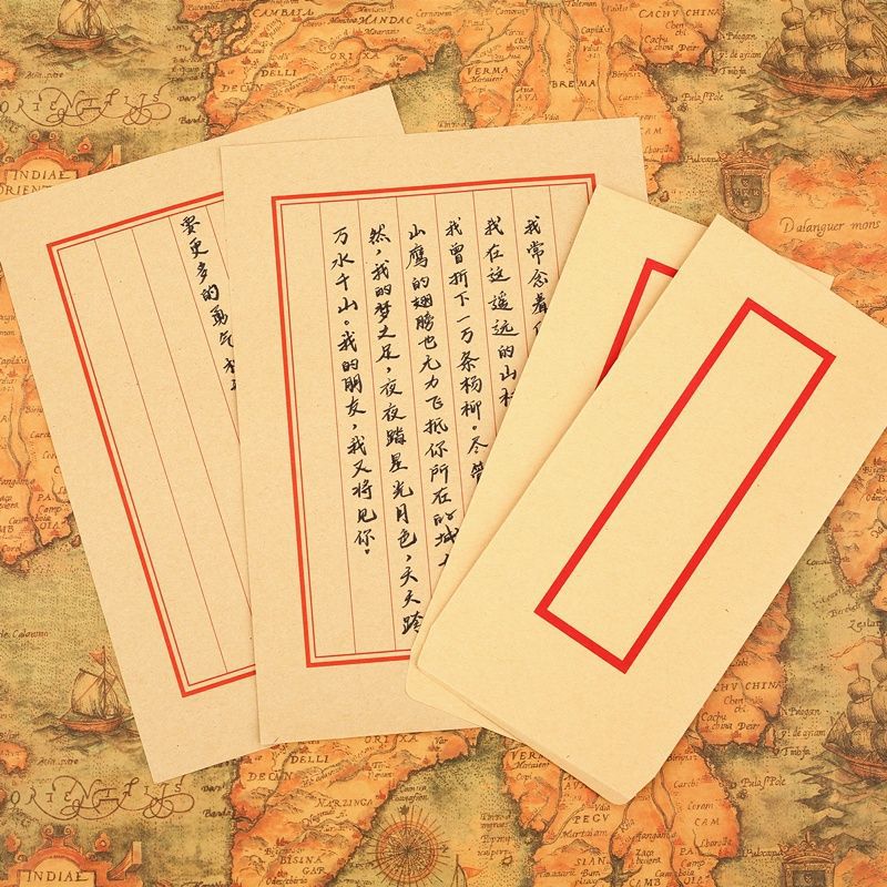 レトロ中国風封筒古風中国風便箋セットクラフト紙/白紙縦八行便箋カスタマイズ