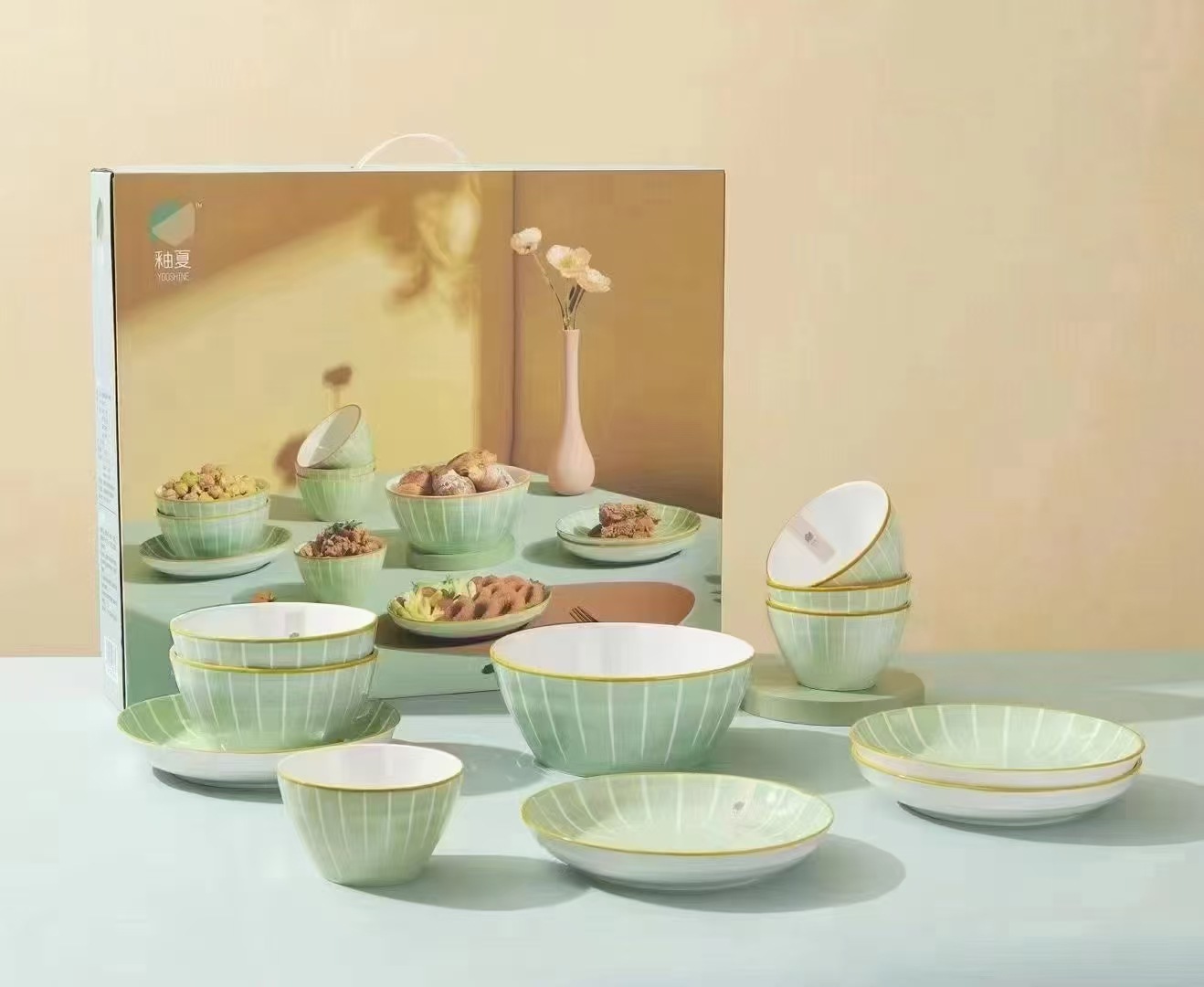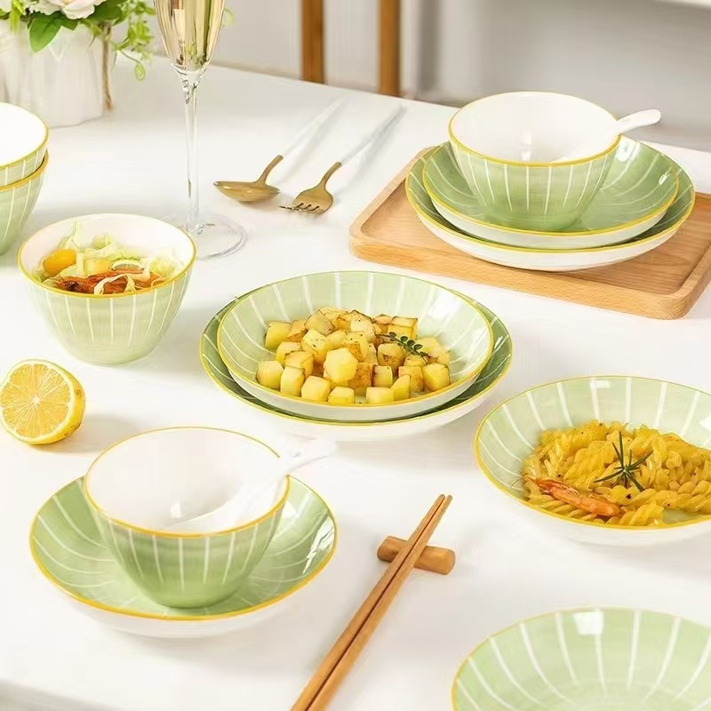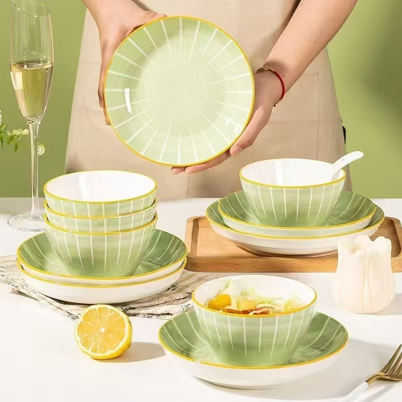 Qingmu 11 ピース食器家庭用シンプルなライト高級セラミックボウルとプレートセットジュエリーバンク保険イベントギフト卸売