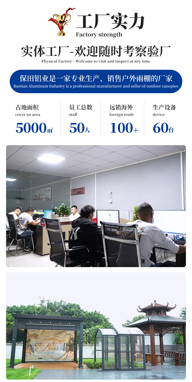 工場レジャー景観亭屋外日除けアルミ合金凉亭庭花園乗凉棚中国式四角亭
