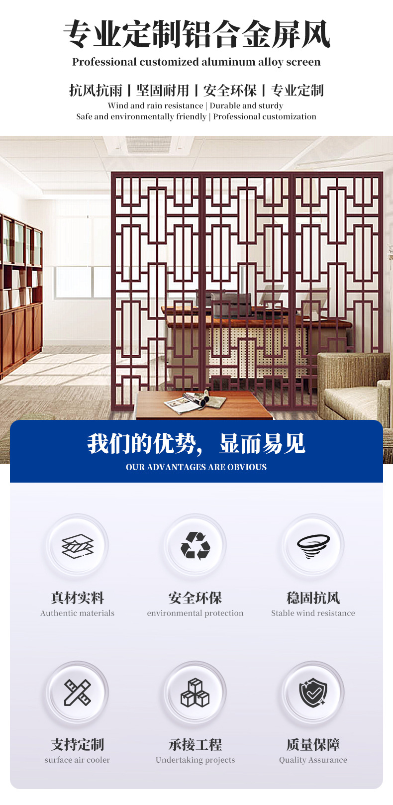 屏風は中国式屏風を遮断して客間の玄関オフィスに入ると合金屏風を遮断する