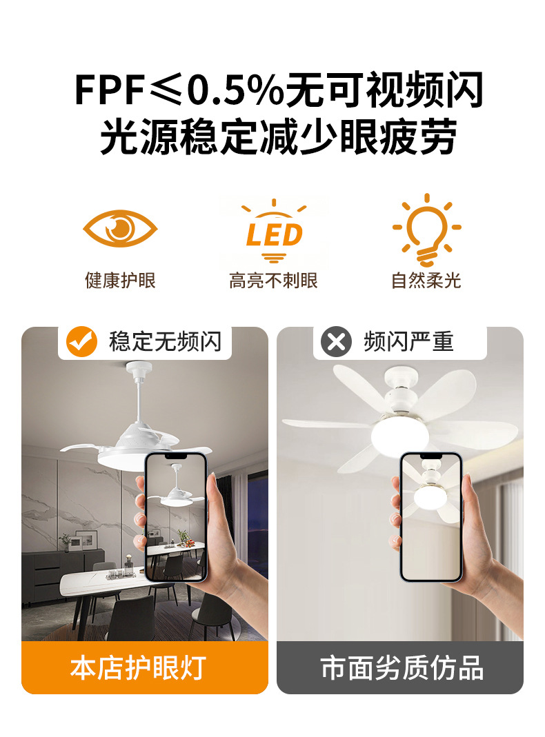 国境を越えた新型家庭用シャンデリアe27ねじ口シャンデリアファン一体寝室led延長ポール見えないファンランプ
