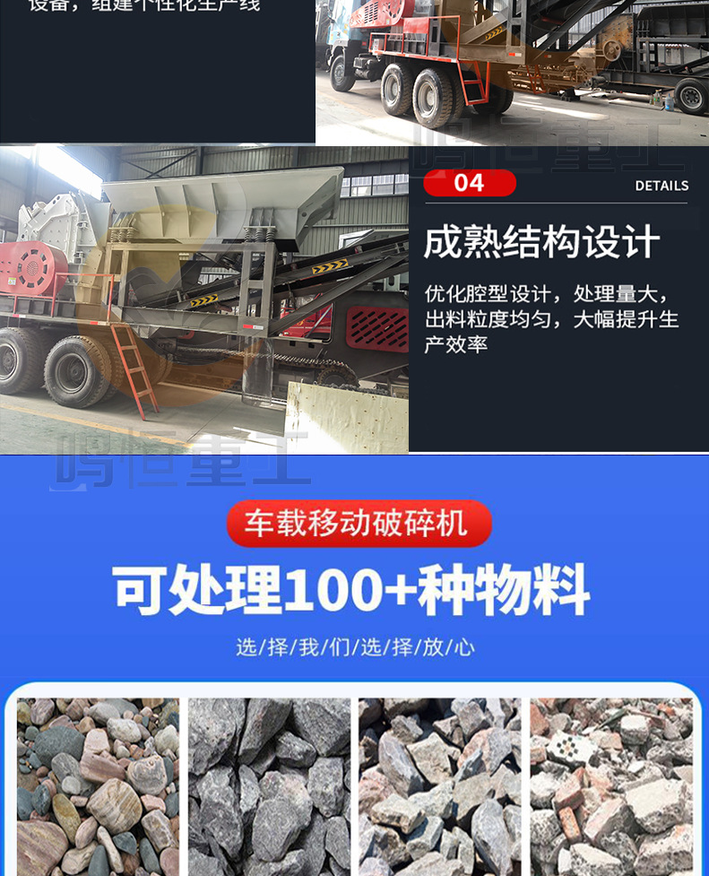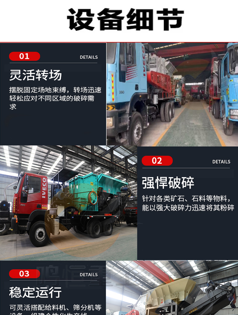 車両搭載型移動破砕生産ライン ライムストーンインパクトクラッシャー 大型タイヤ式複合クラッシャー
