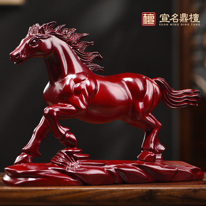 成功をもたらす赤いローズウッドの彫刻、無垢材の干支馬、ホームリビングルームの装飾、オープニング工芸品