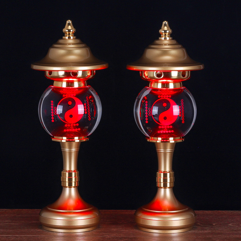 LED カラフルなクリスタル蓮ランプ仏灯堂口道教長明家庭用プラグインバッテリー八卦ランプペア