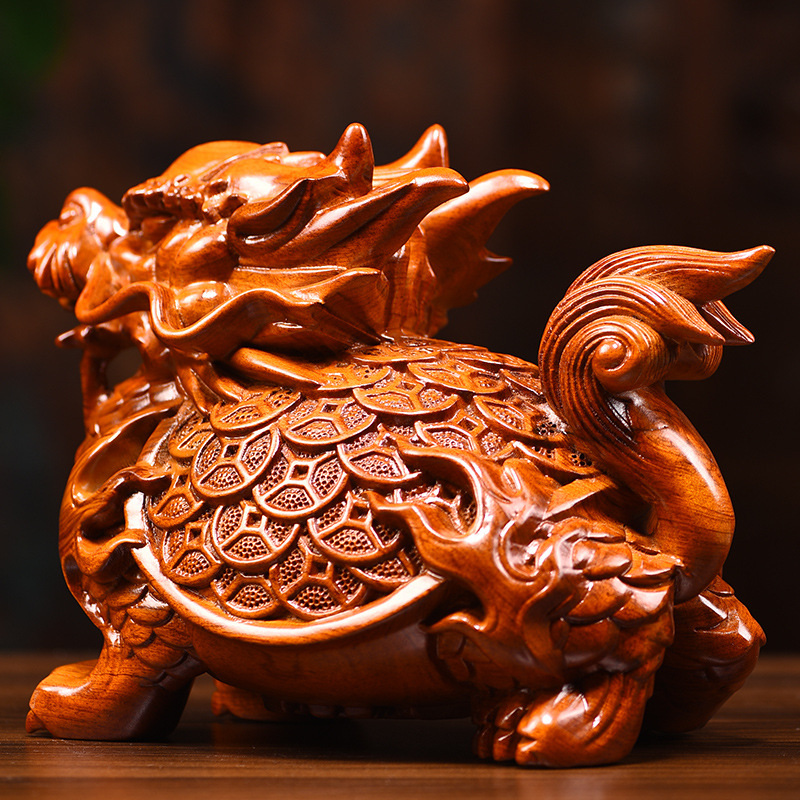 ローズウッド彫刻ドラゴンタートル装飾品八卦風水家宝富工芸品デスクトップリビングルームの装飾高齢者へのギフト