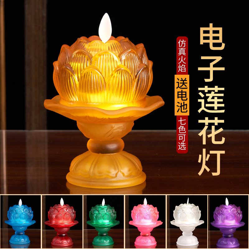 家庭用電子模擬キャンドル LED ガラス蓮仏ランプ菩薩小さな蓮ランプ仏ランプ観音長明ランプ