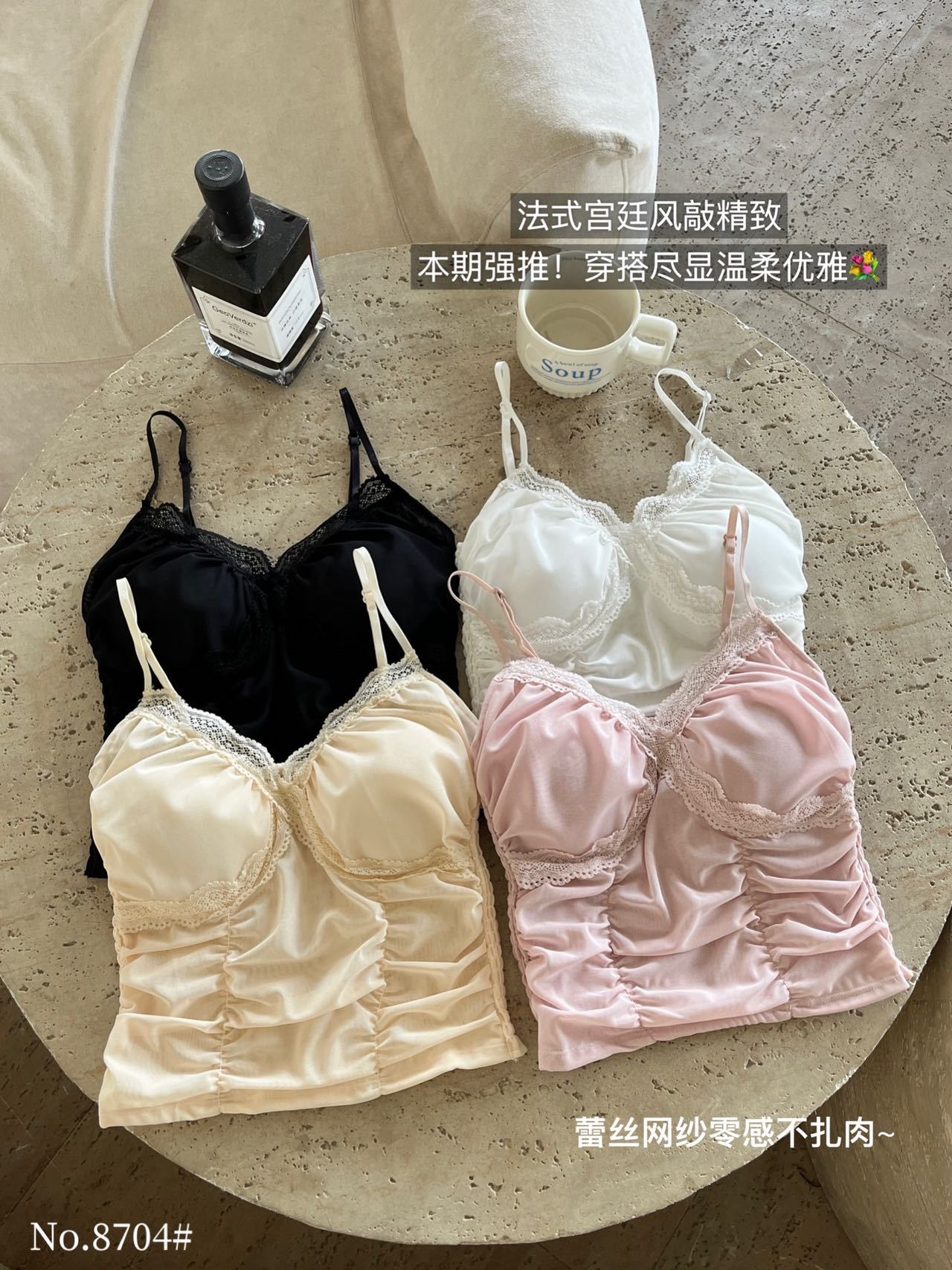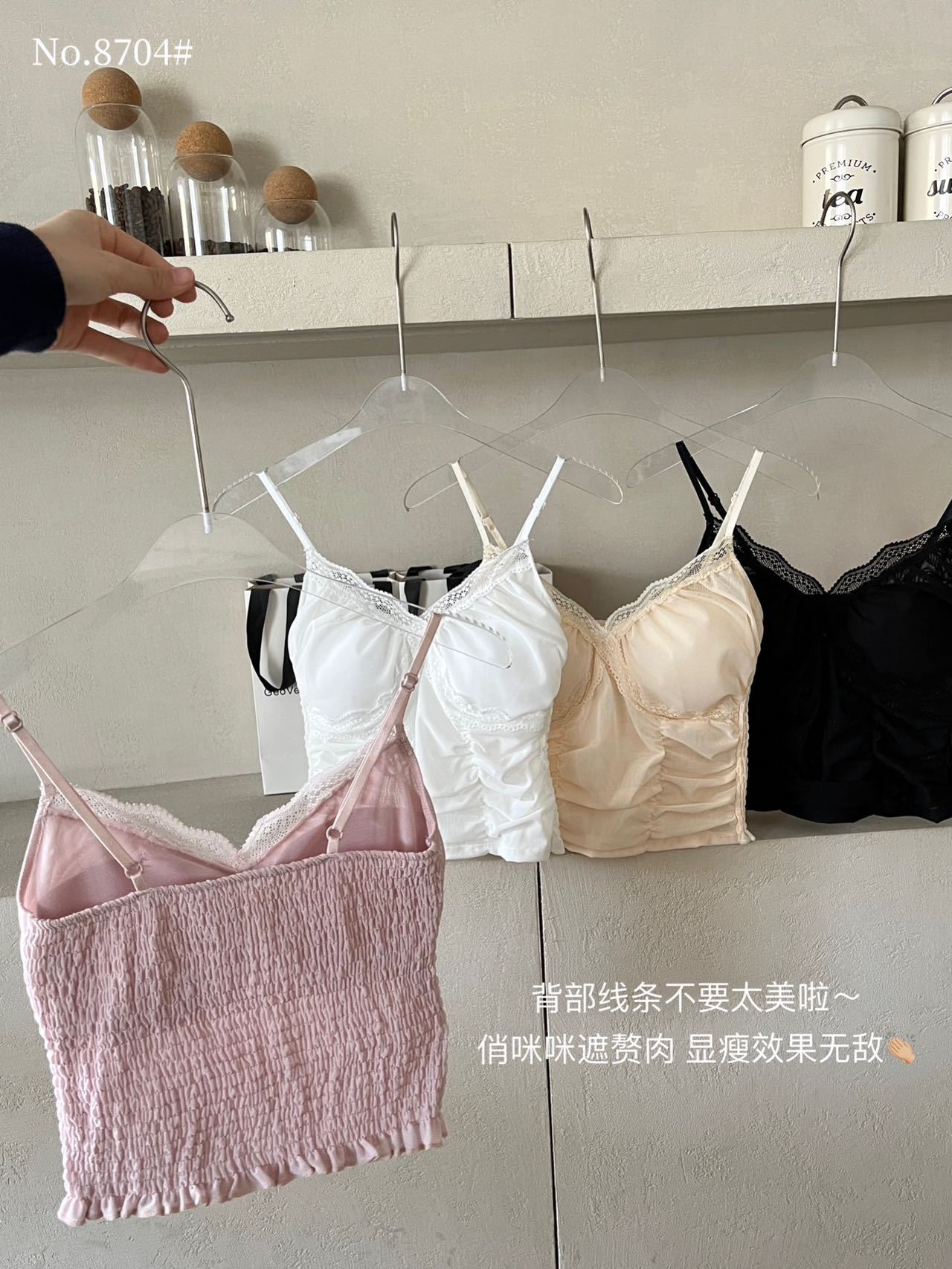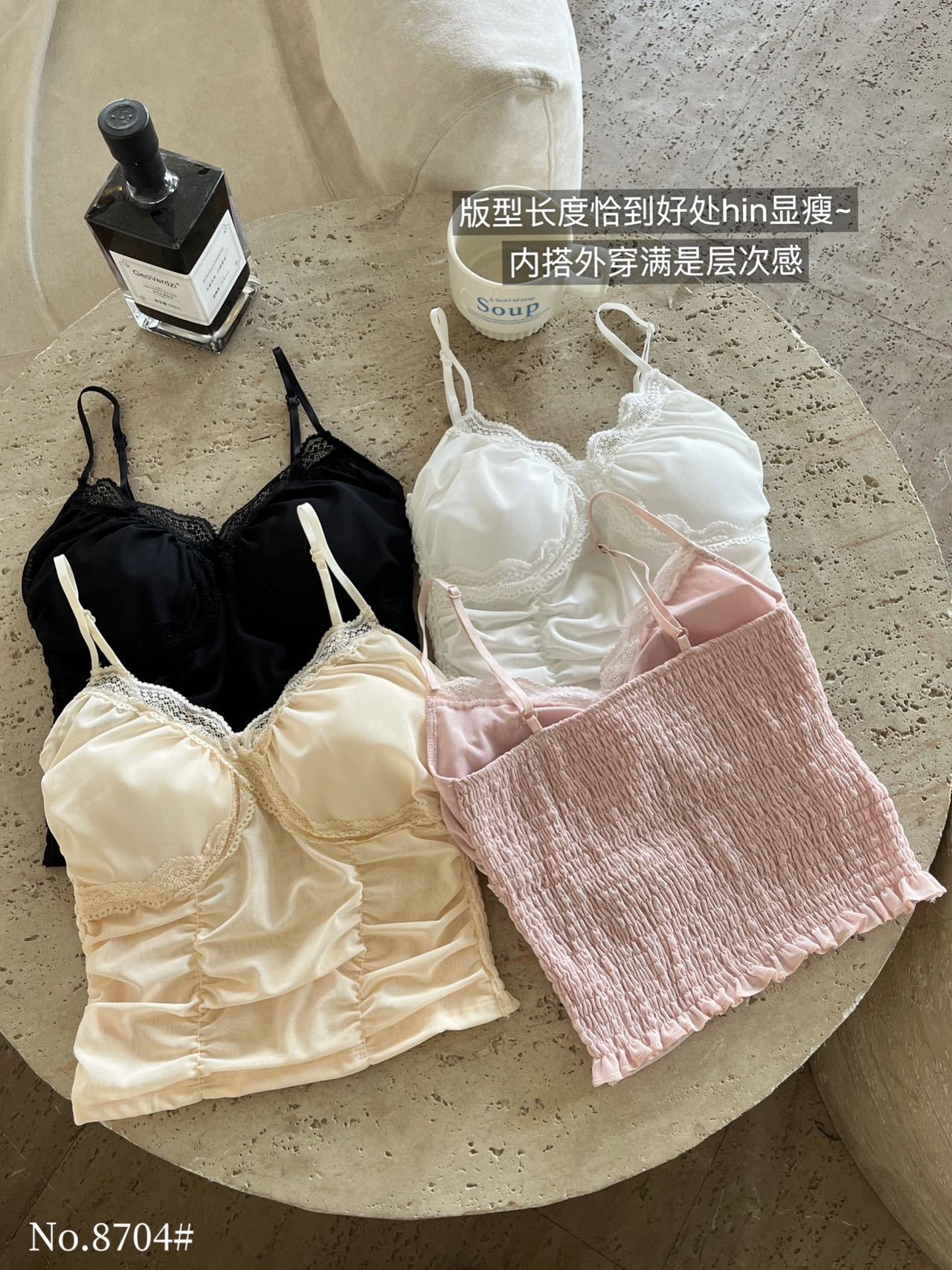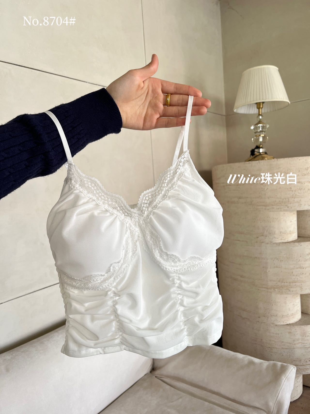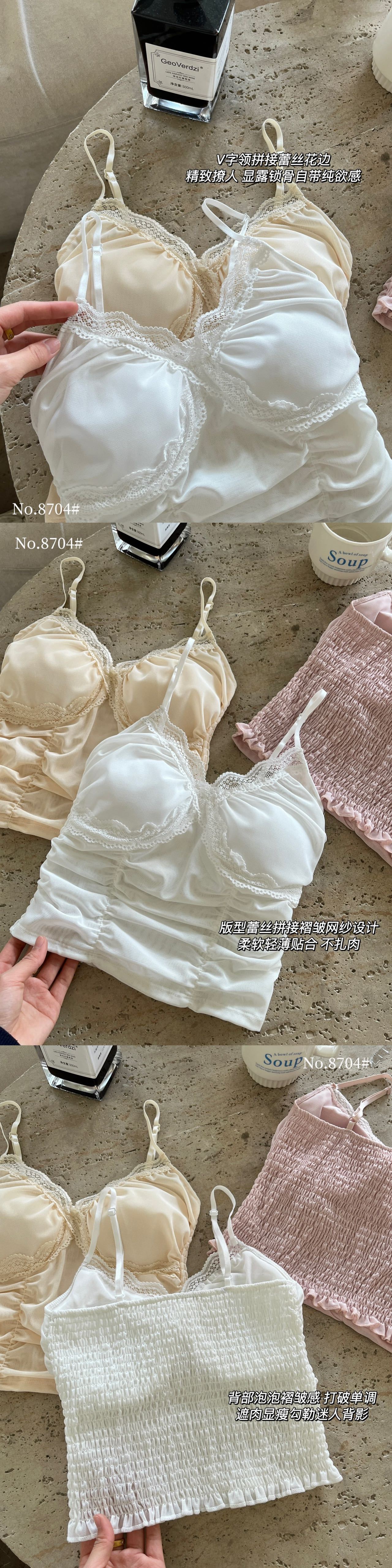 8704 # 純欲ギャルvネックレースの縁のキャミソール