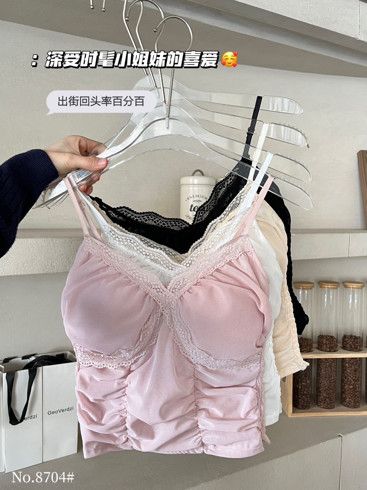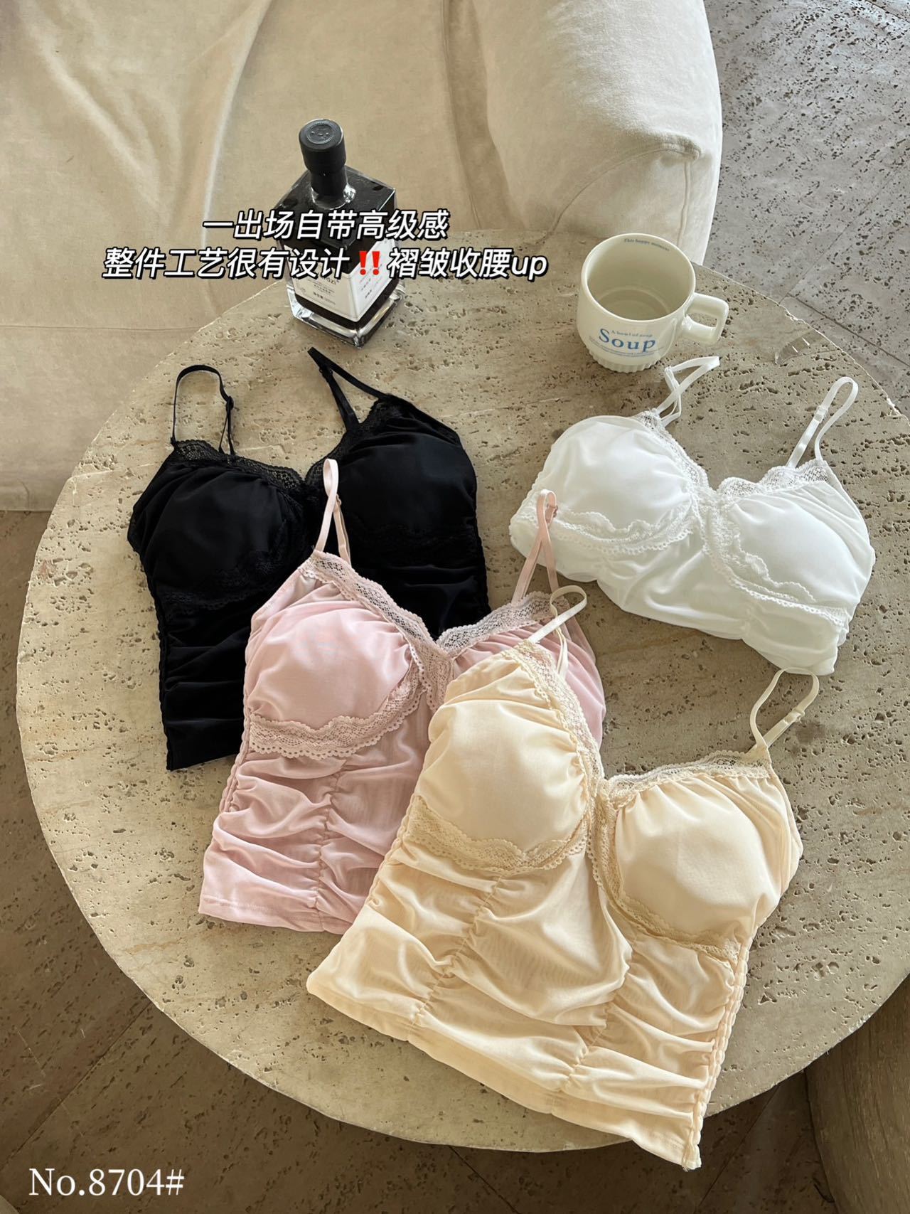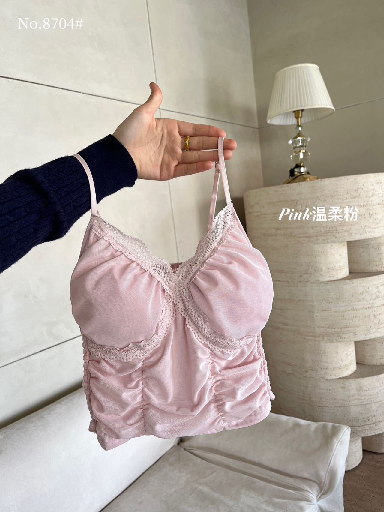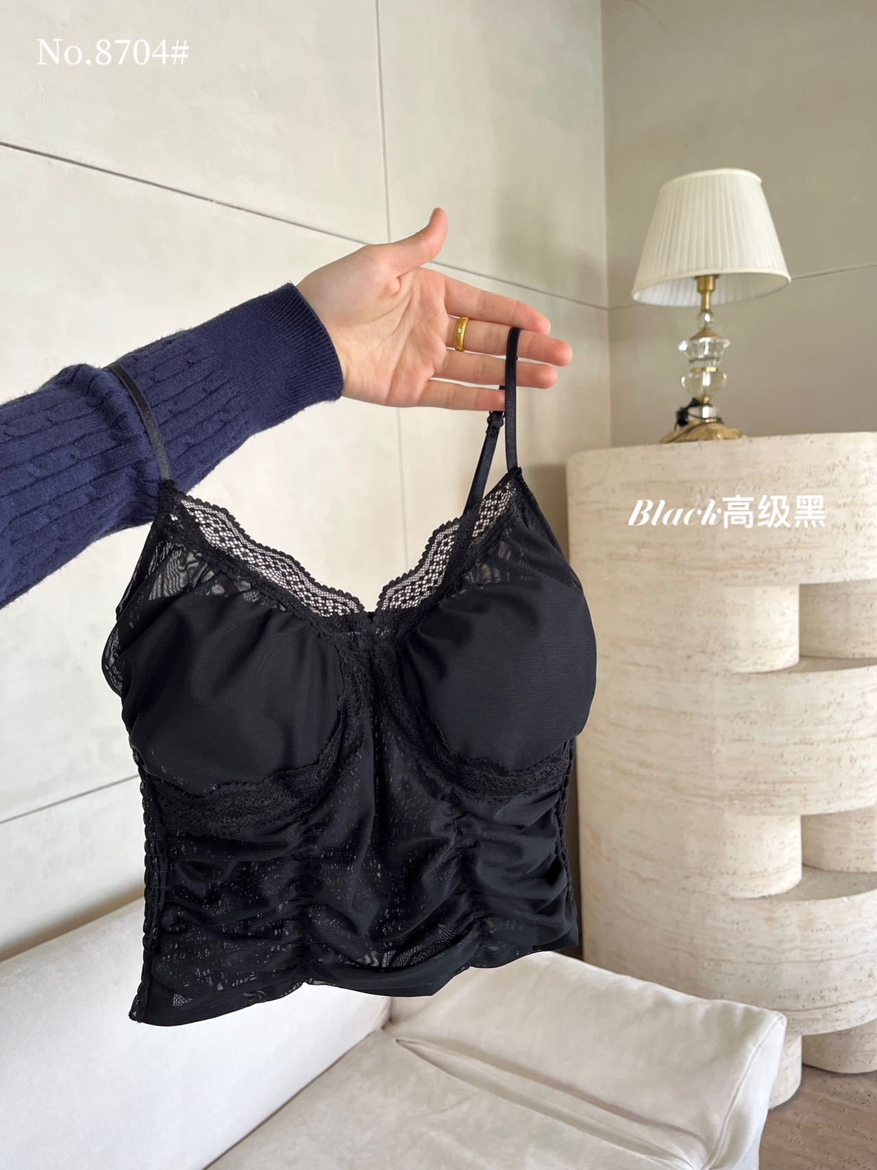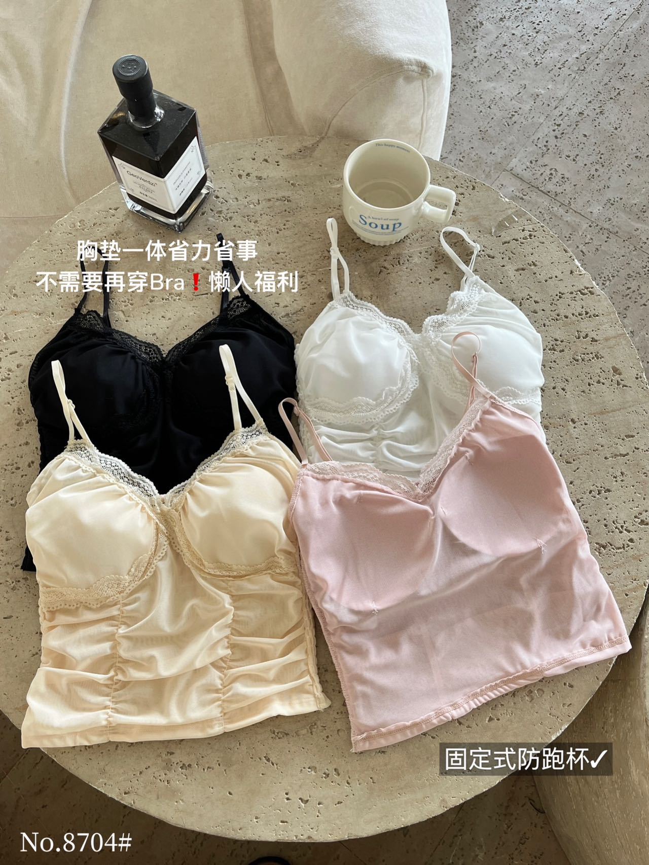 8704 # 純欲ギャルvネックレースの縁のキャミソール