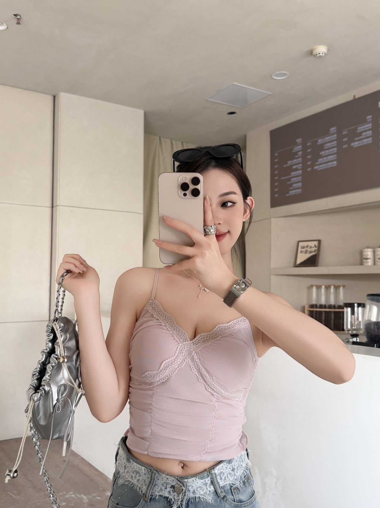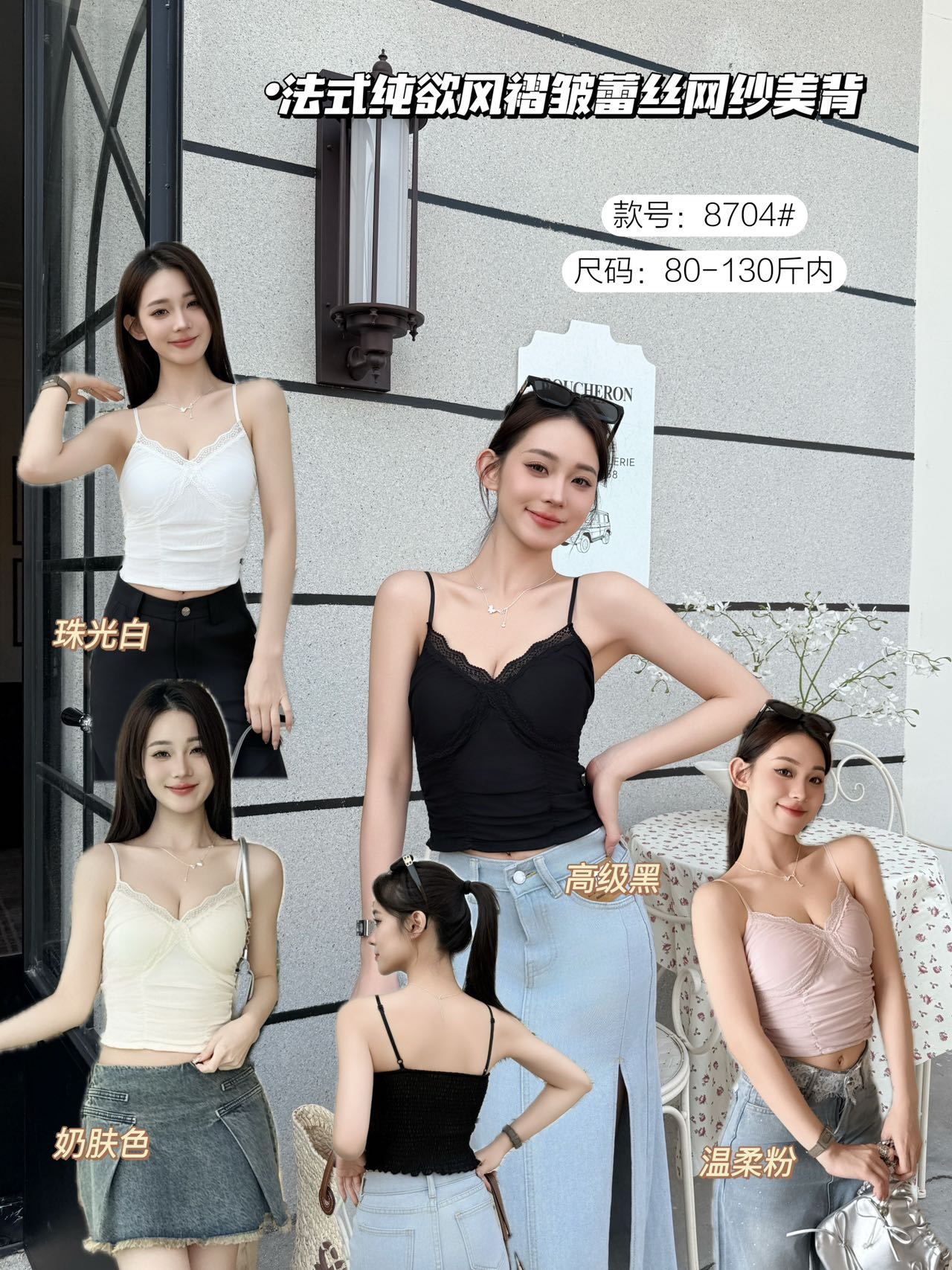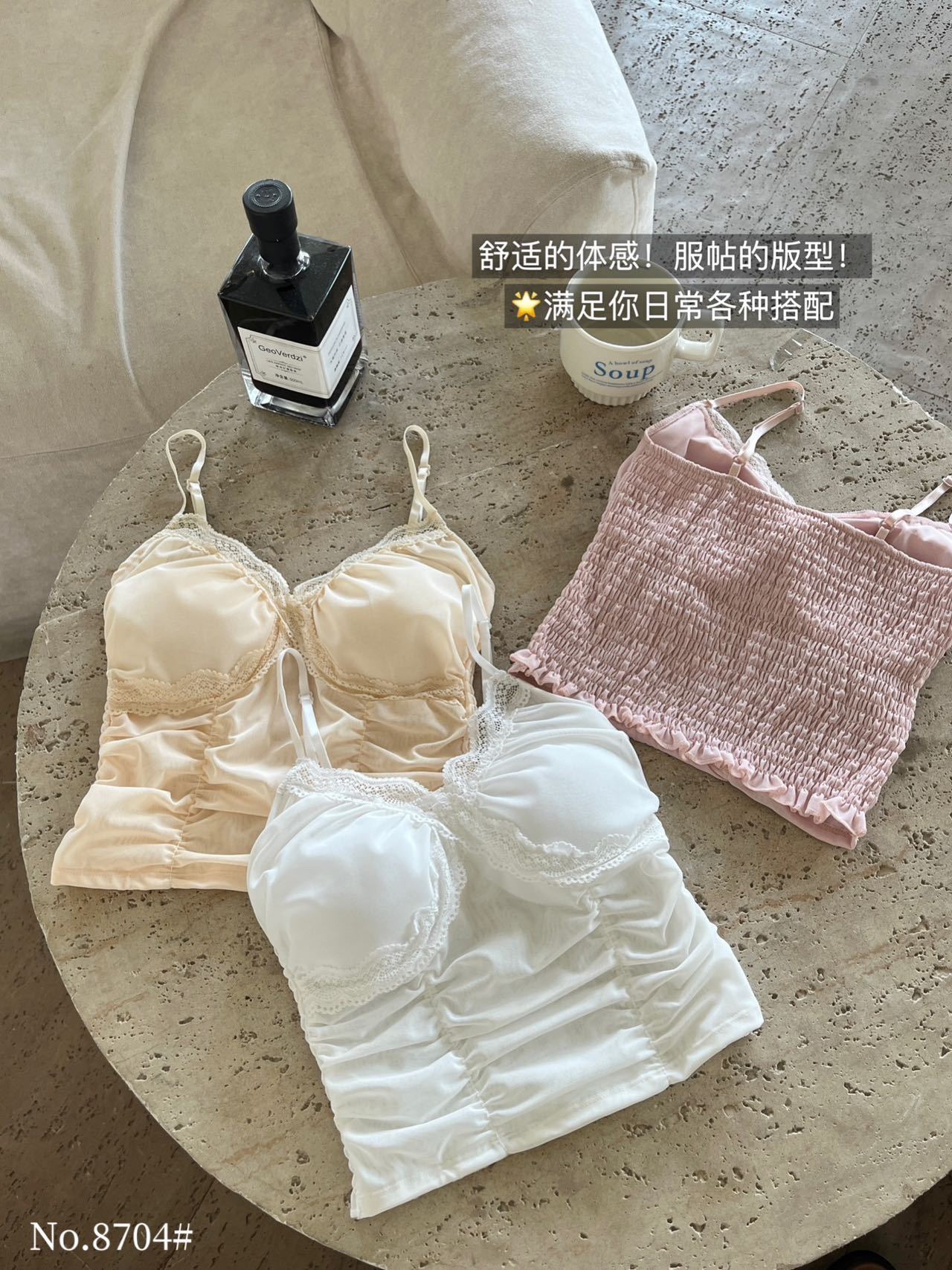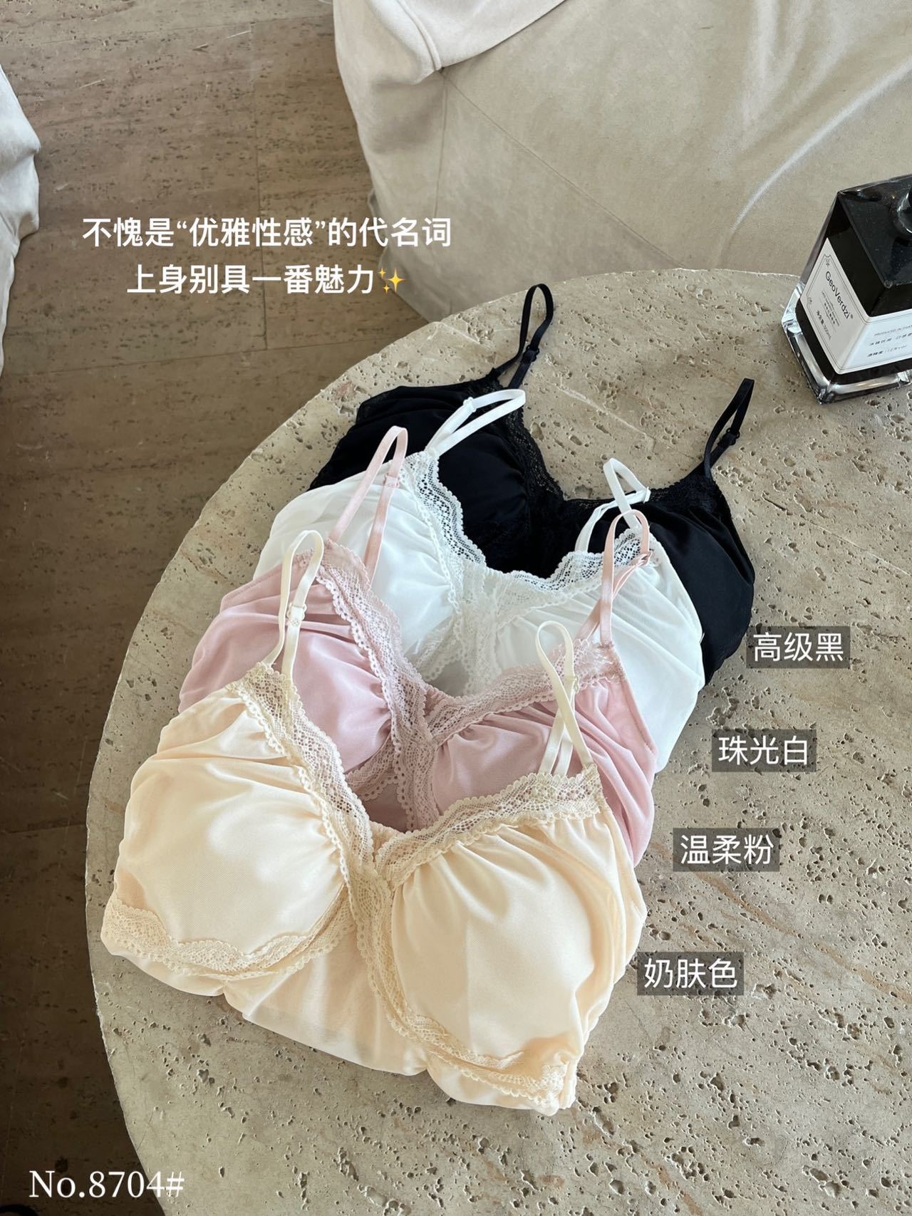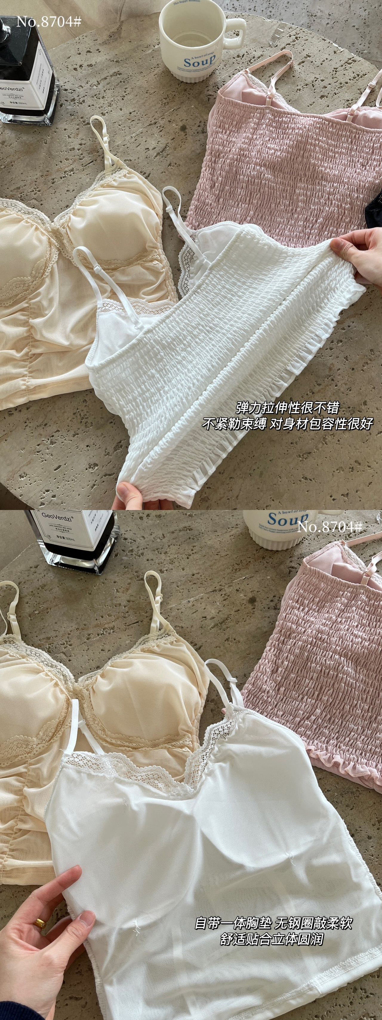 8704 # 純欲ギャルvネックレースの縁のキャミソール