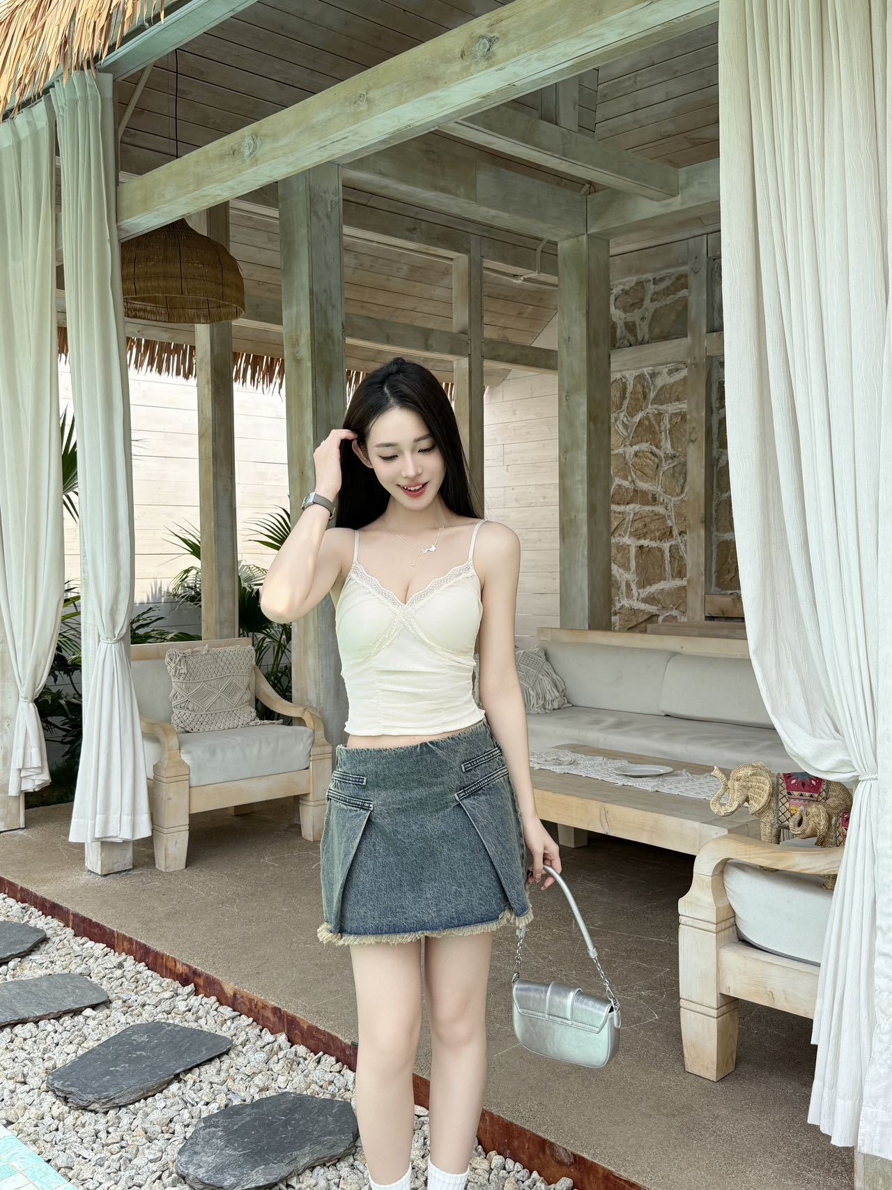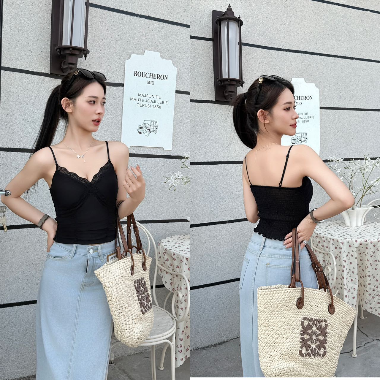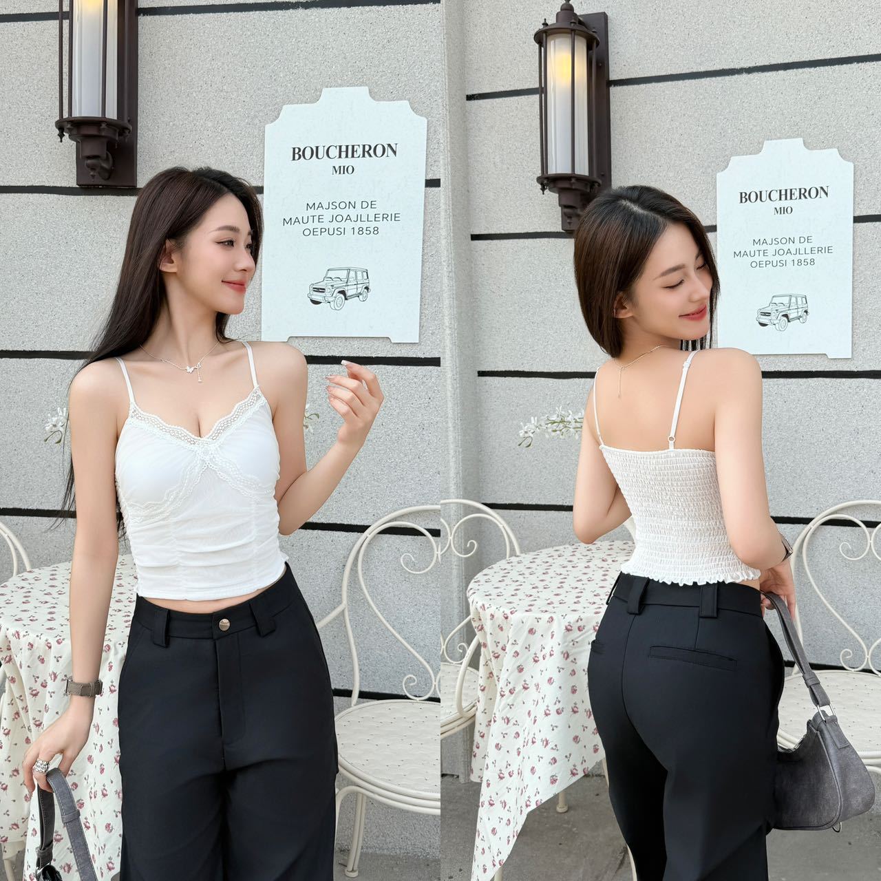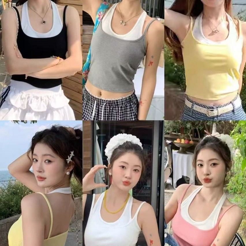 L3326#双层挂脖荡领吊带上衣女装2025新款夏季小众设计露背抹胸串