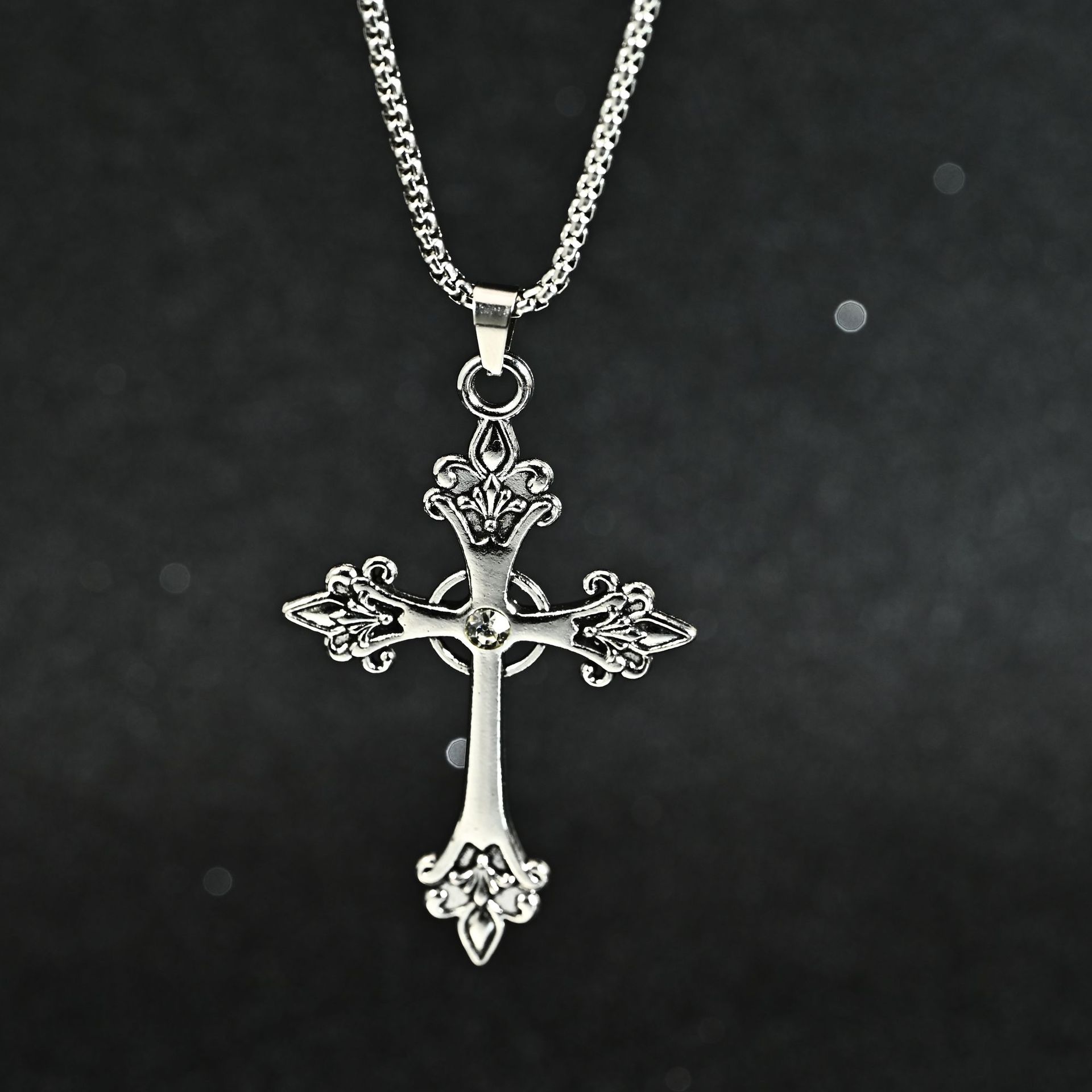 2024熱売対外貿易ステンレスネックレス炎復古クロス合金鋳造男性ペンダントネックレスアクセサリー