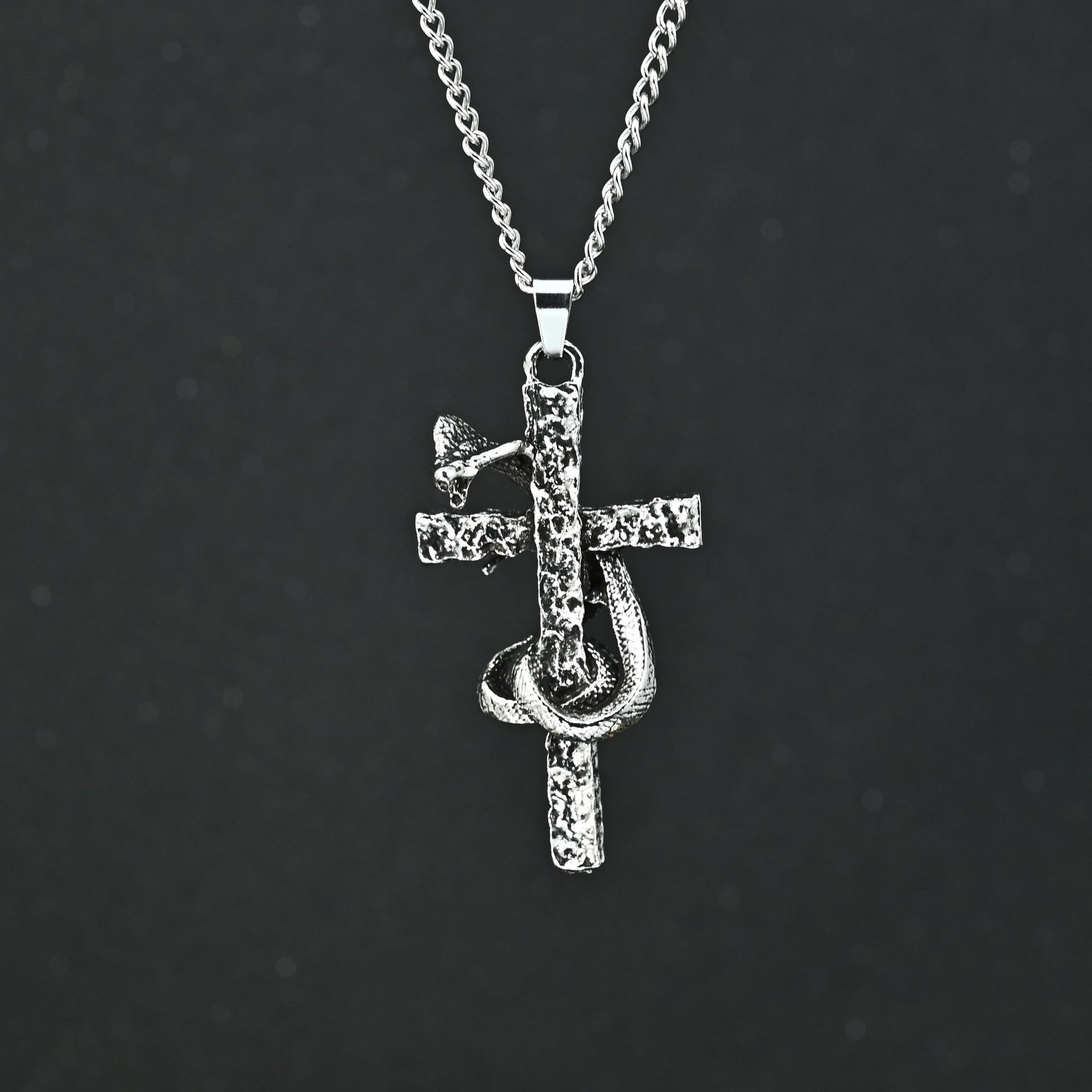 新款盘蛇十字架项链欧美嘻哈吊坠时尚街头复古朋克风男女小众挂件