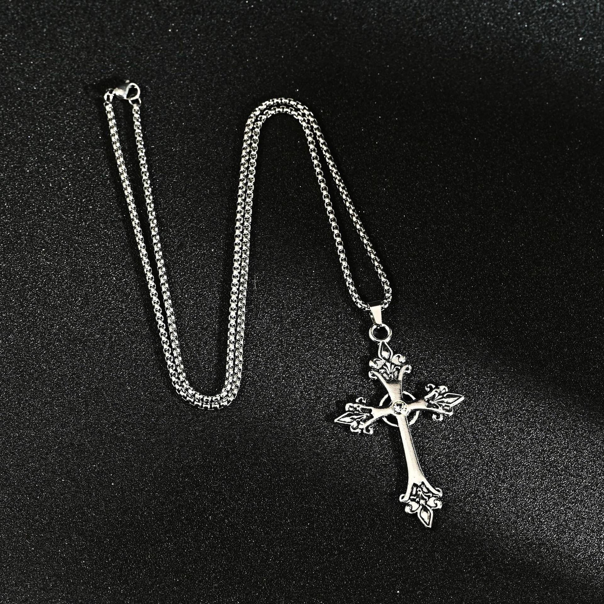 メーカー卸売り直売新型レトロ欧米十字花ペンダントクロス男性個性チタン鋼ネックレス