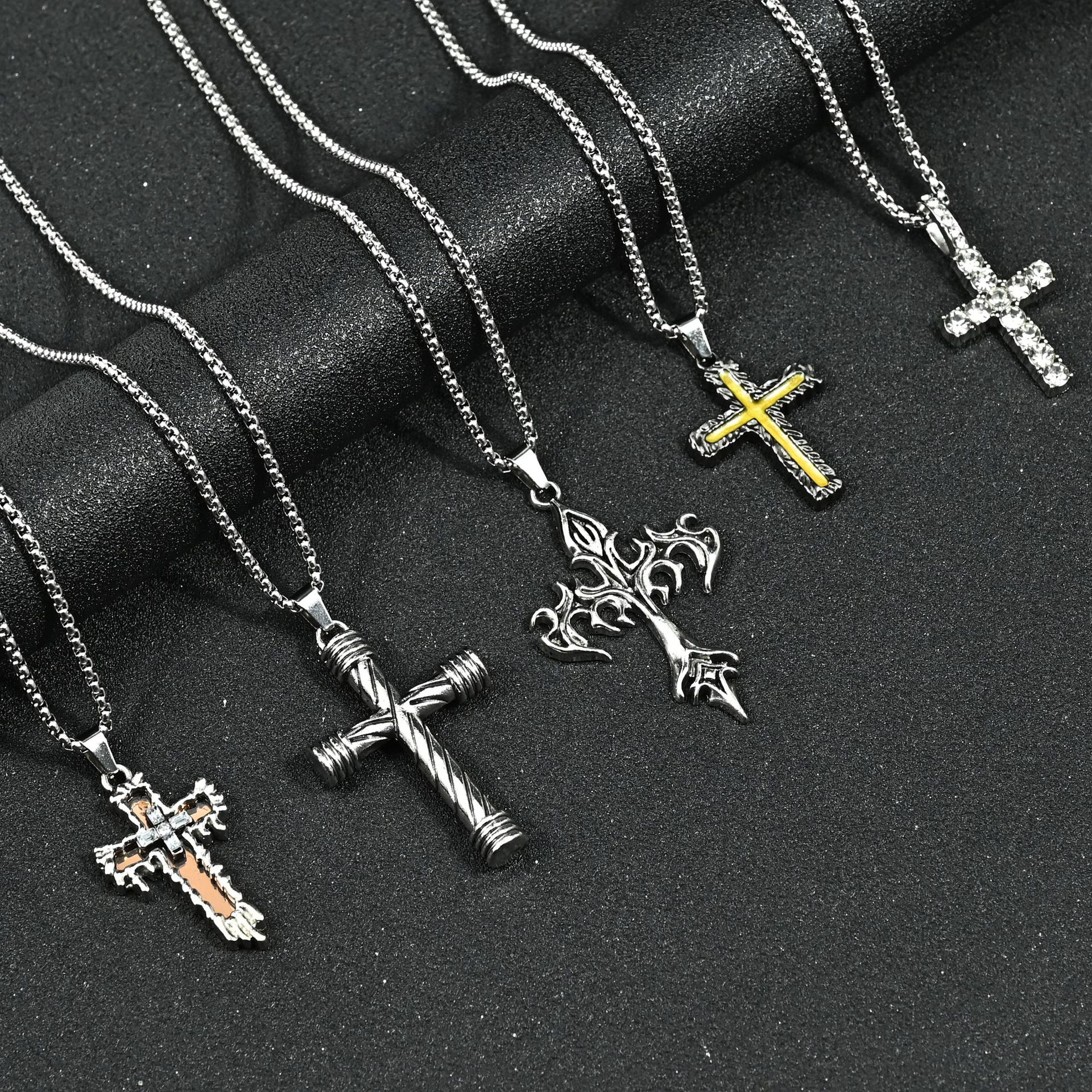 国境を越えた欧米の新型チタン鋼光沢クロス男性ネックレスヒップホップ
