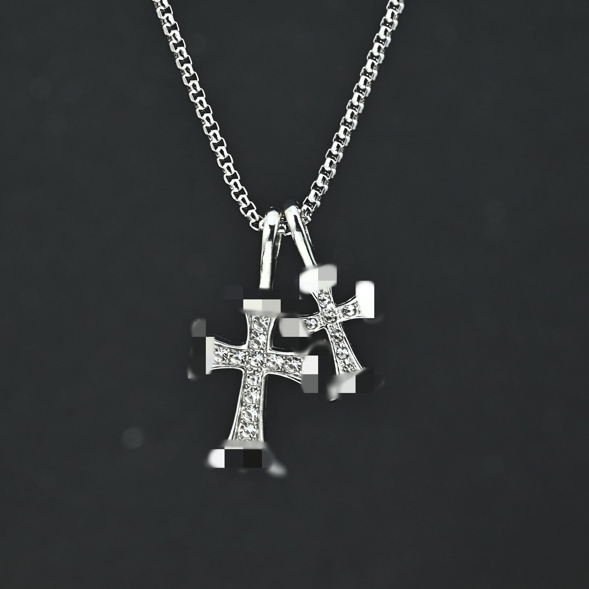 欧美ins冷淡风镶钻双十字架项链男女嘻哈个性甜酷服装配饰批发