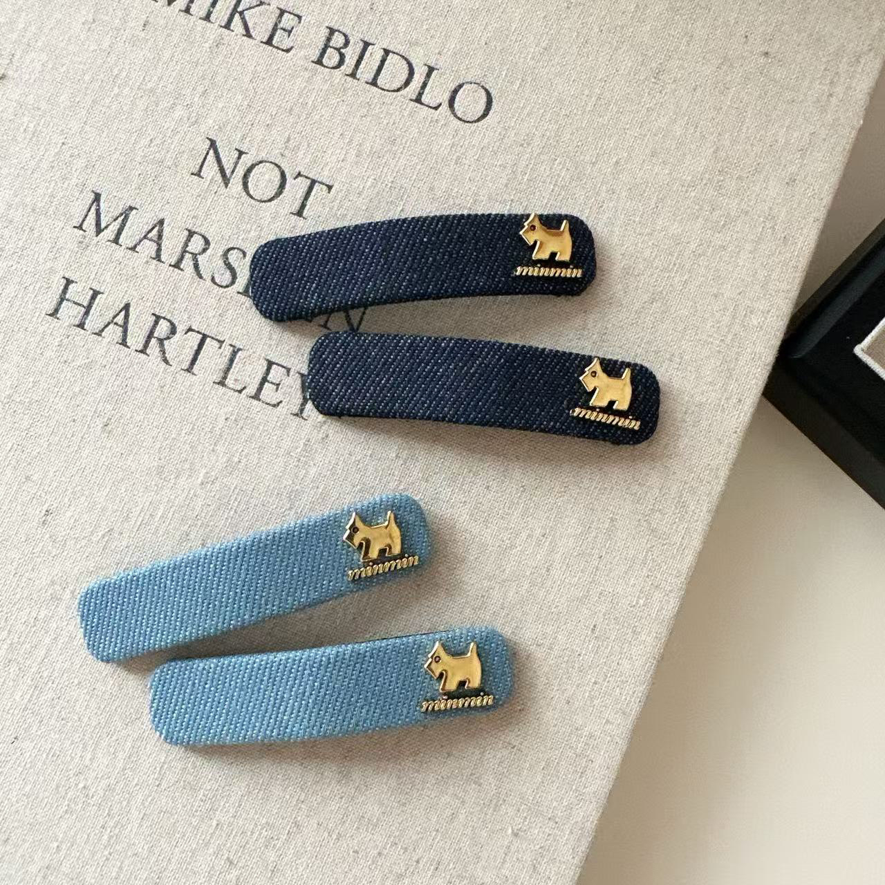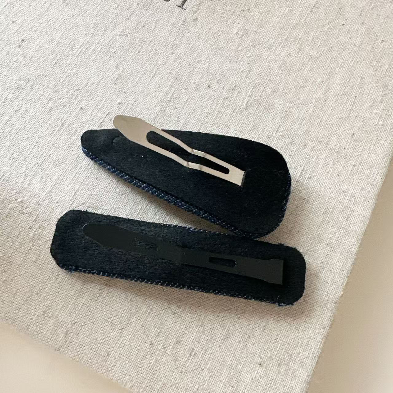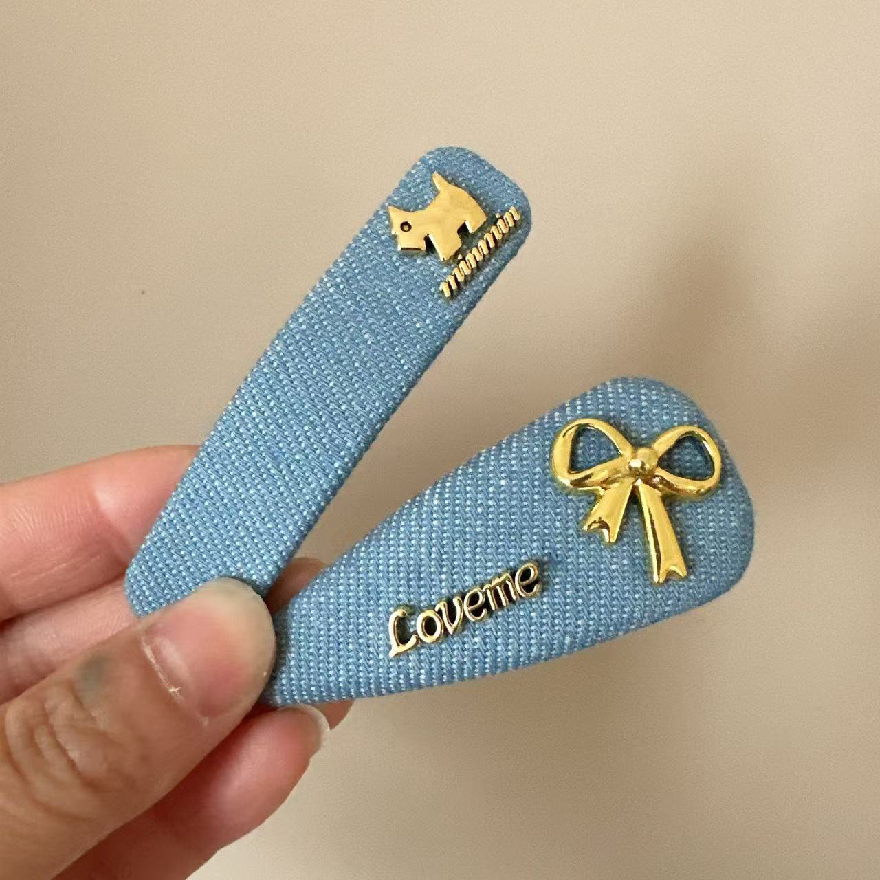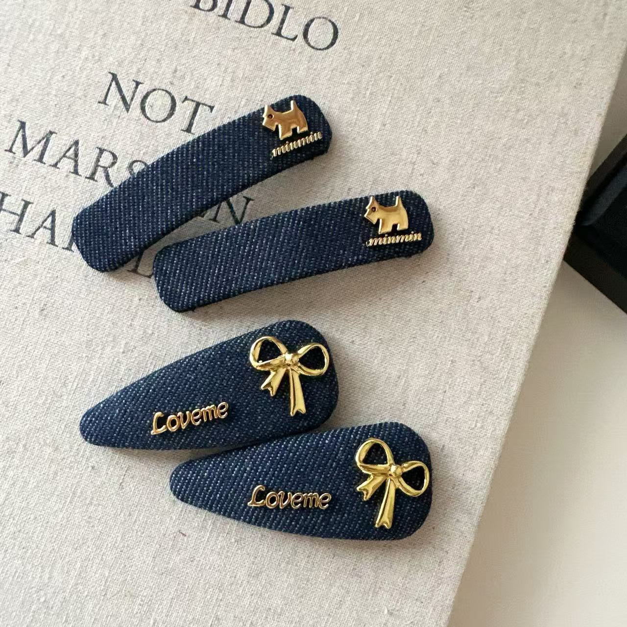 レトロデニムリボンBBヘアピンレターファブリックサイドクリップ韓国風前髪ヘアピンネットセレブヘアアクセサリー