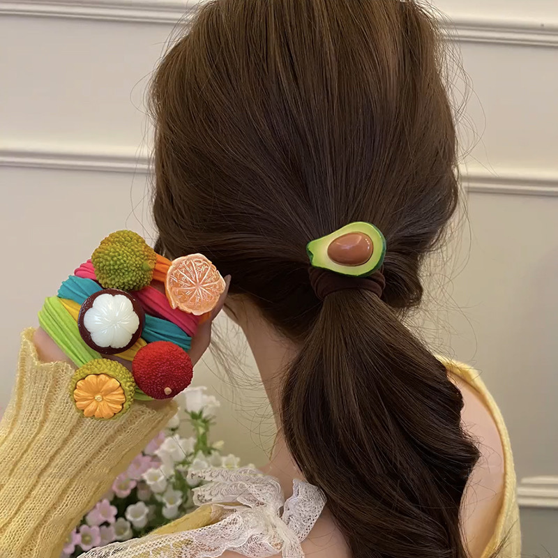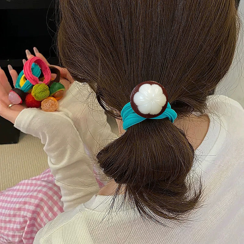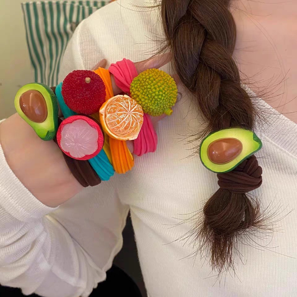 韓国の東大門のかわいい果物のヘアリングは春夏の髪ひものカラーの高弾力で髪を傷つけません。