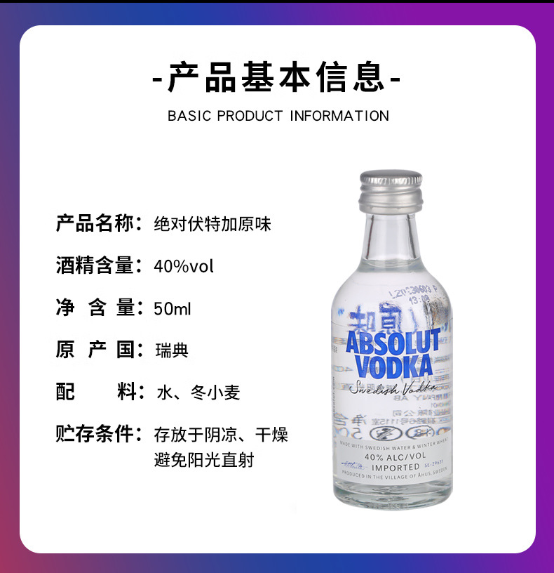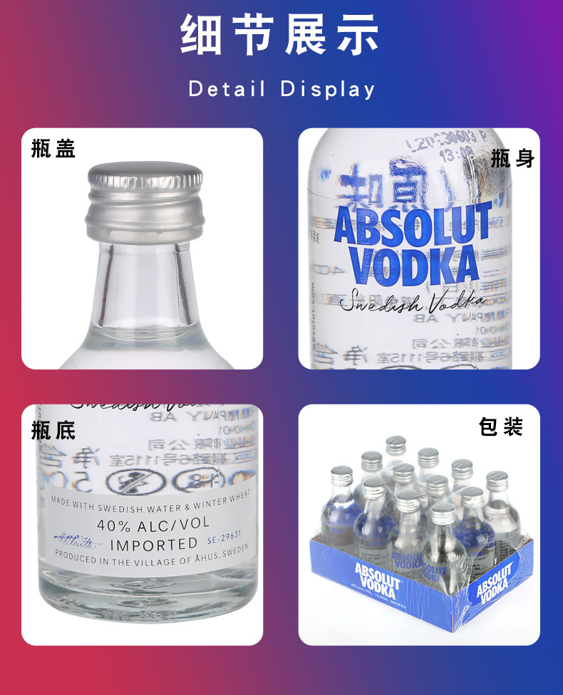 スウェーデンは絶対です. ウォッカの原味40度50ml * 12本の小酒版輸入洋酒の強い酒に酒を調合する