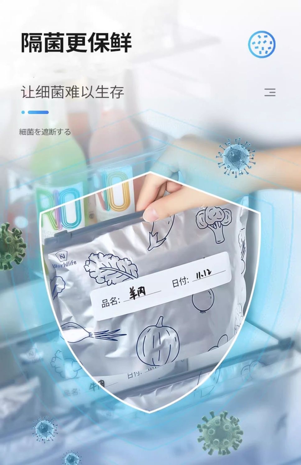 铝箔抗菌保鲜袋冰箱冷冻冷藏密封袋自封袋拉链式食品级封口分装袋