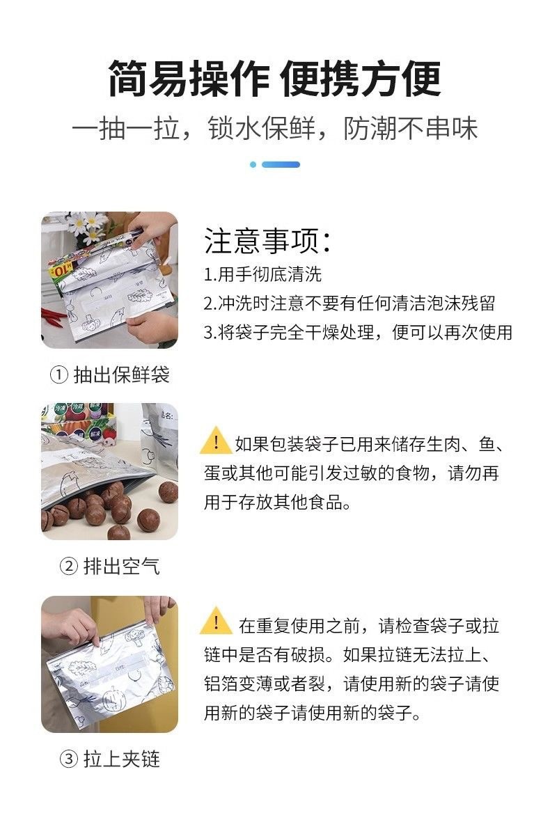抗菌铝箔保鲜袋冰箱冷冻密封袋自封袋拉链式食品级封口分装袋
