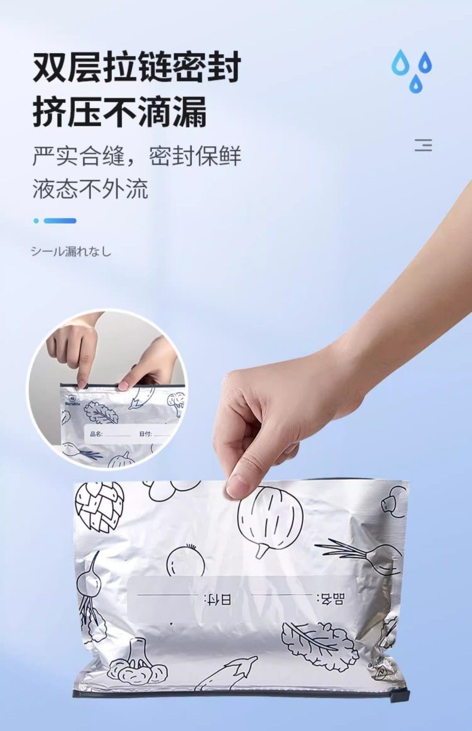 铝箔保鲜袋日本家用厨房冷藏密封袋加厚自封食物保鲜专用冷冻袋