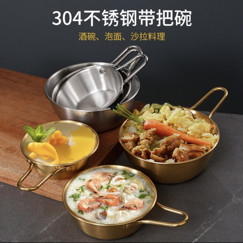韓国酒椀 ハンドル付き 304ステンレス製 温冷酒椀 ゴールデンイエローボウル 料亭専用調味料