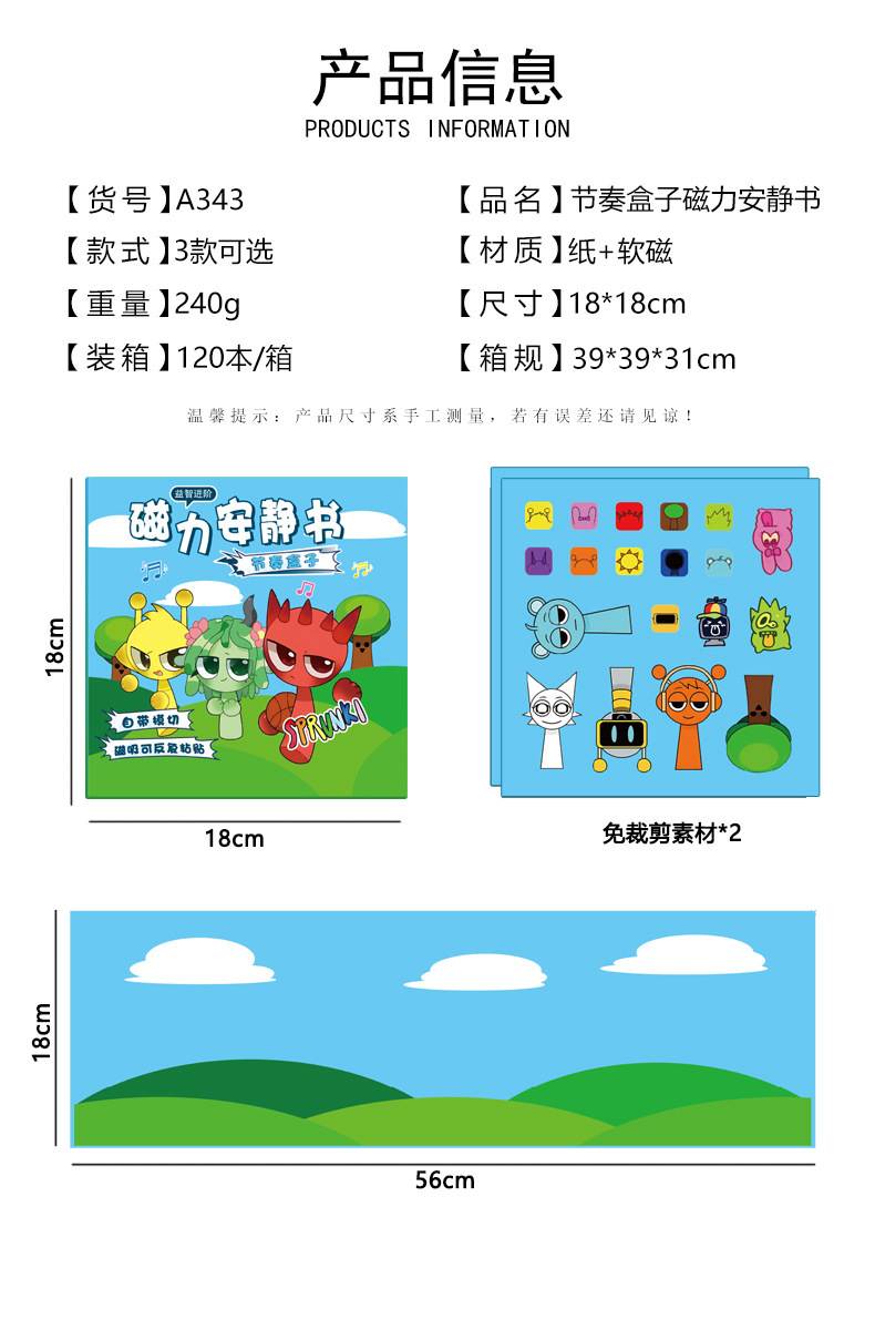 リズム箱磁気静かな本大本18cm磁気玩具児童diy手作り無裁断シール本