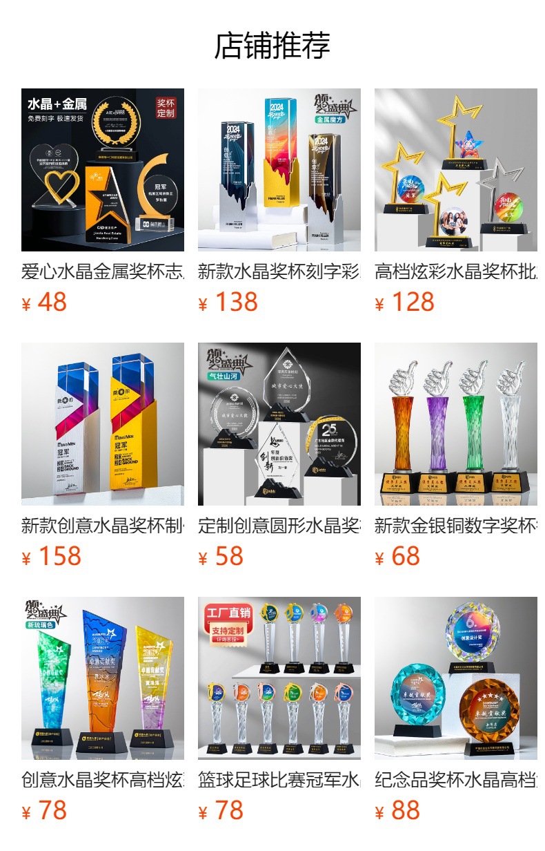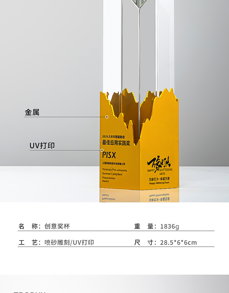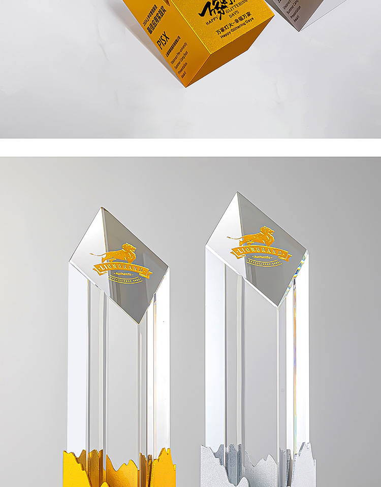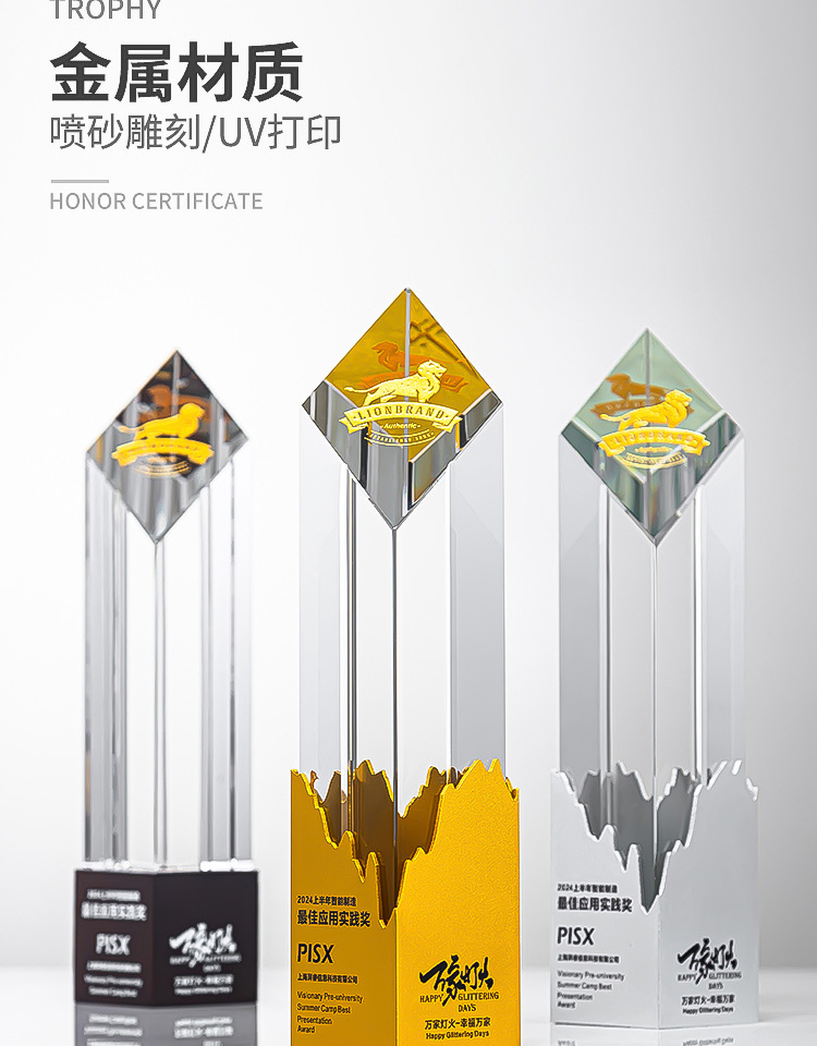 新製品クリスタルトロフィークリエイティブメタル優秀従業員年次総会賞チーム名誉退職賞刻印制作