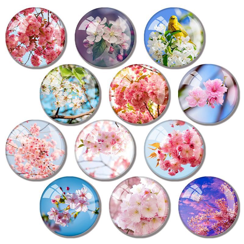 国境を越えたアマゾンピンクの桜系冷蔵庫に円形のクリエイティブガラス磁石白板メッセージ装飾磁力貼りを貼る