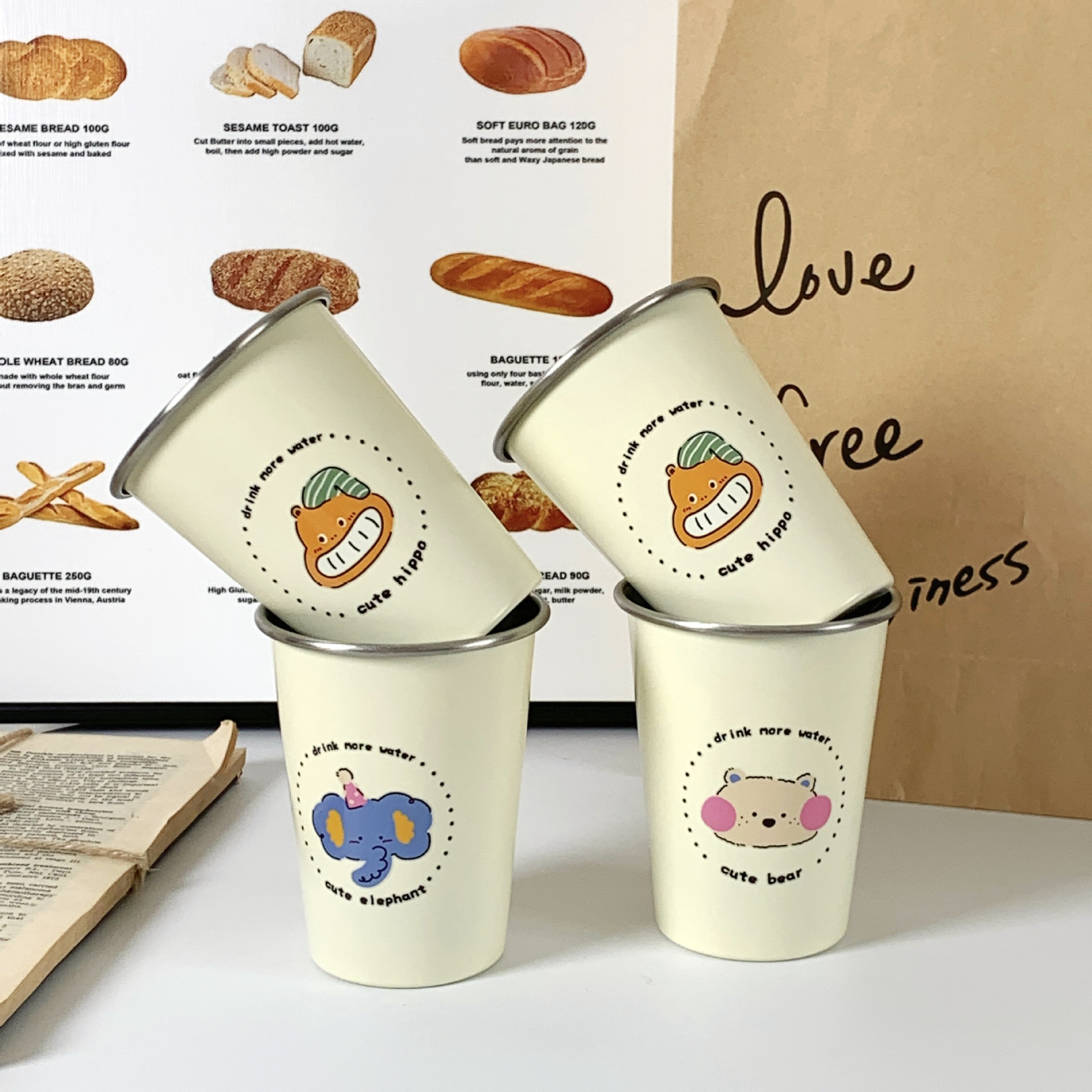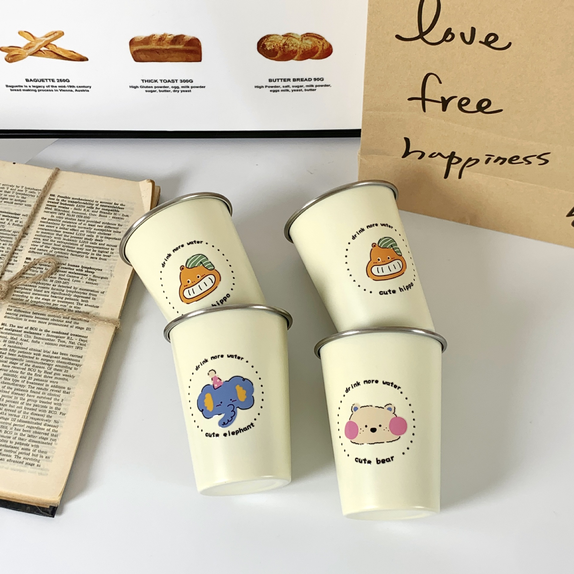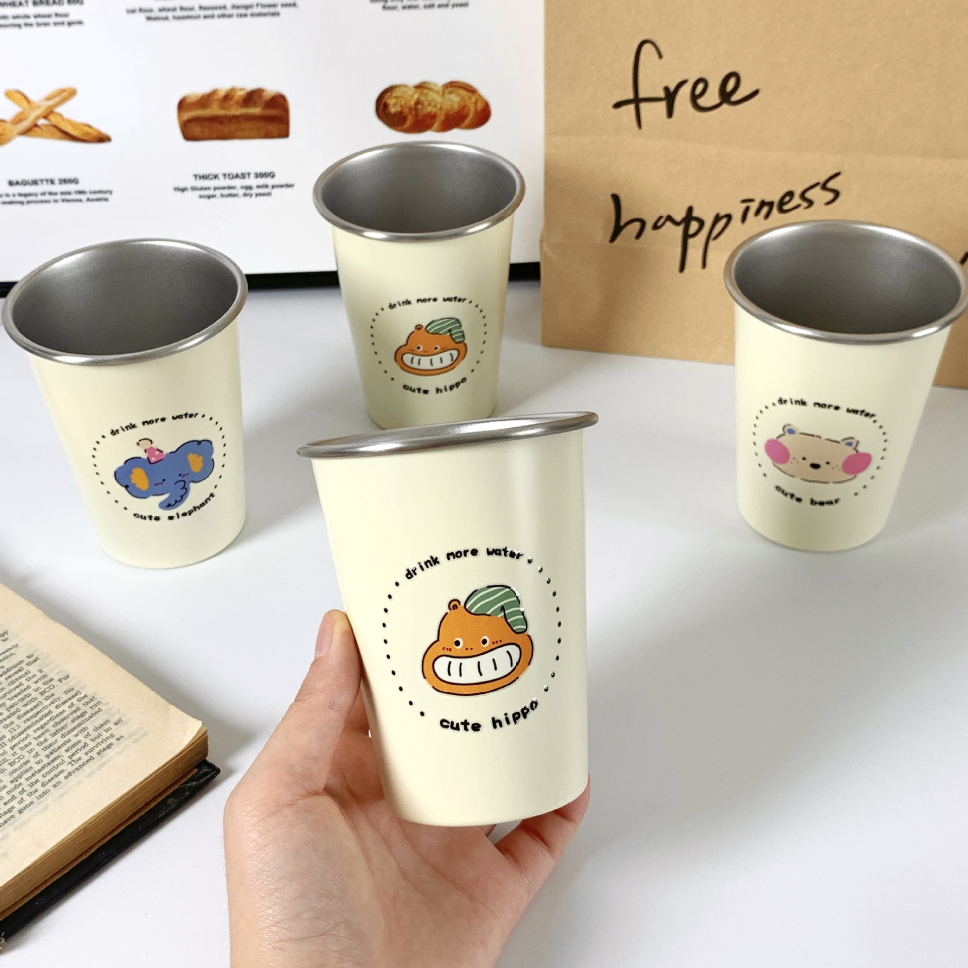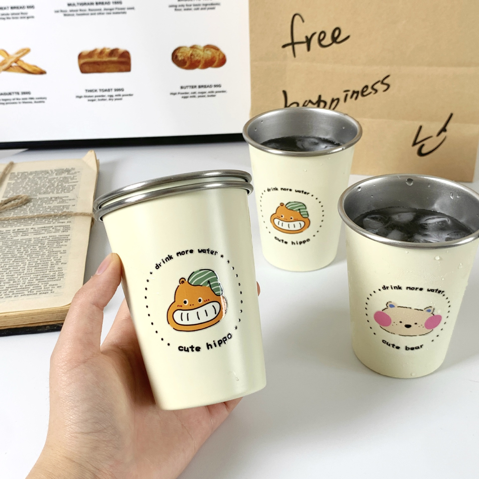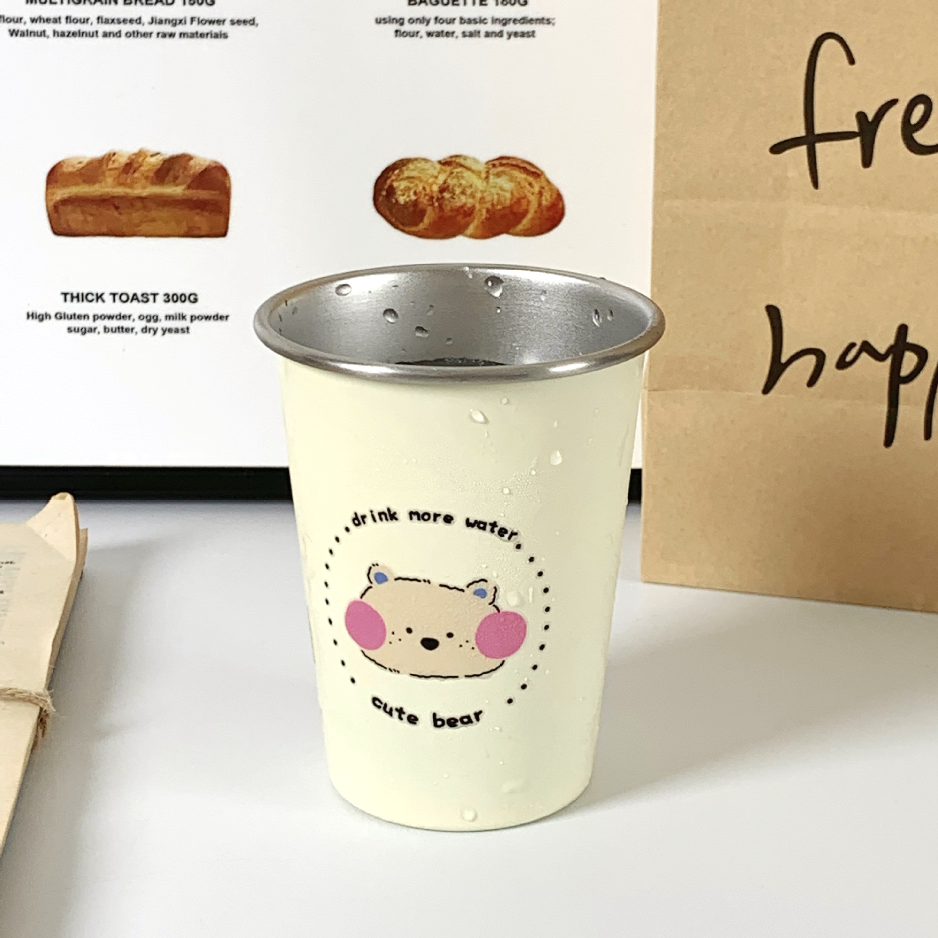 304 ステンレス鋼ドーパミンコーヒーカップオフィスワーカーポータブルカップ漫画かわいいかわいいストローカップポータブルカップ