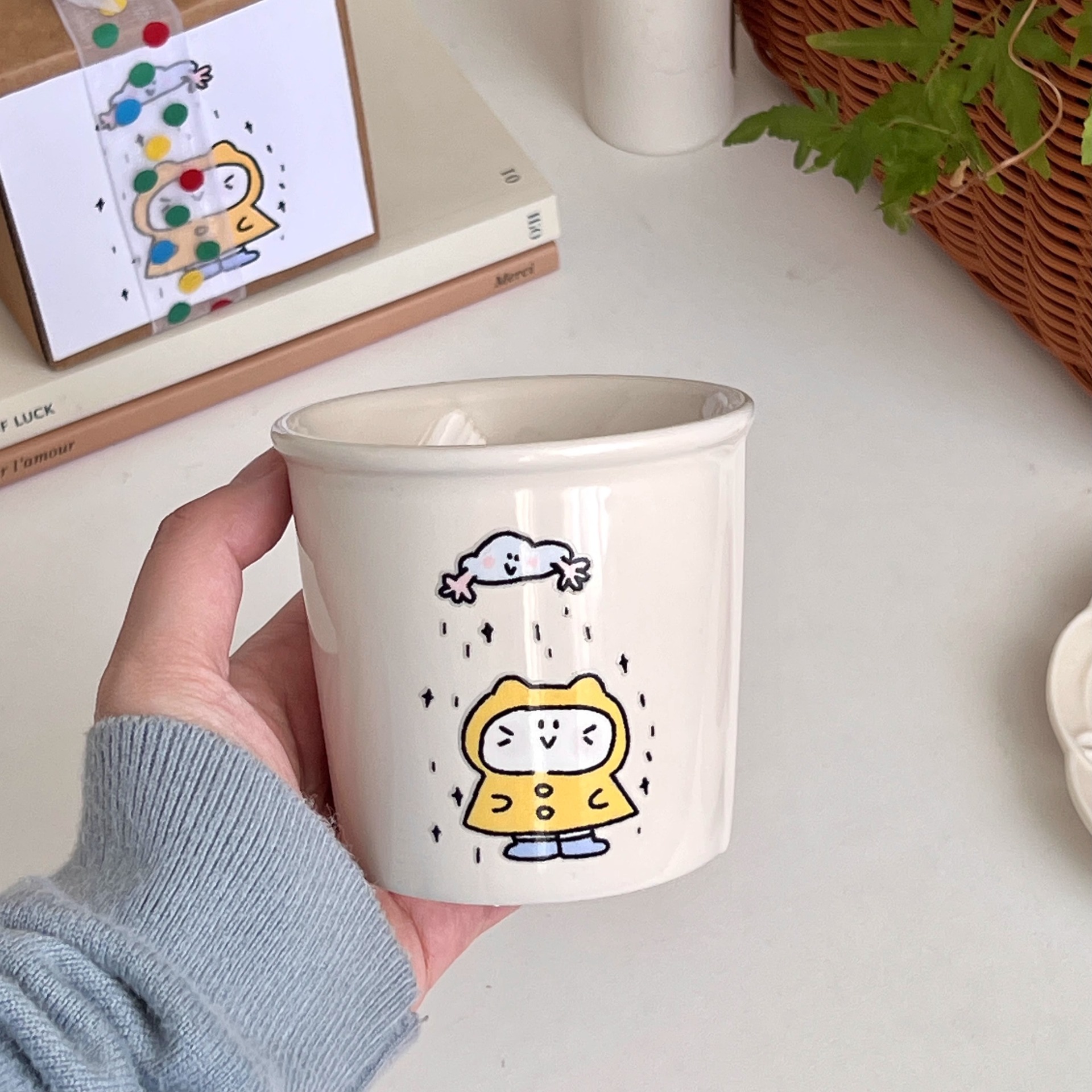 雨の猫のマグカップの赤い本の同じ種類のコップのシンプルな大容量のコップの牛乳の杯のコーヒーの杯の陶磁器の杯