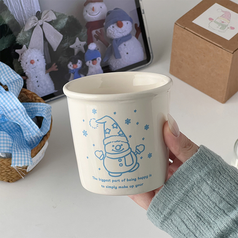 日式无把雪人陶瓷杯马克杯高颜值卡通早餐杯可爱咖啡杯圣诞水杯