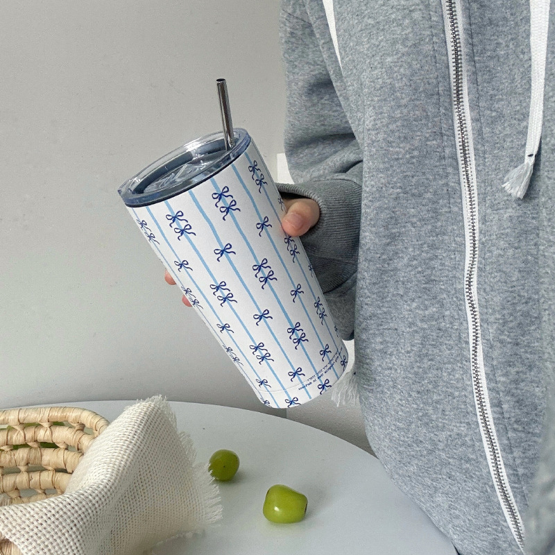 青い蝶結び保温カップ304ストレートカップ大容量カップオフィスデスクトップカップ