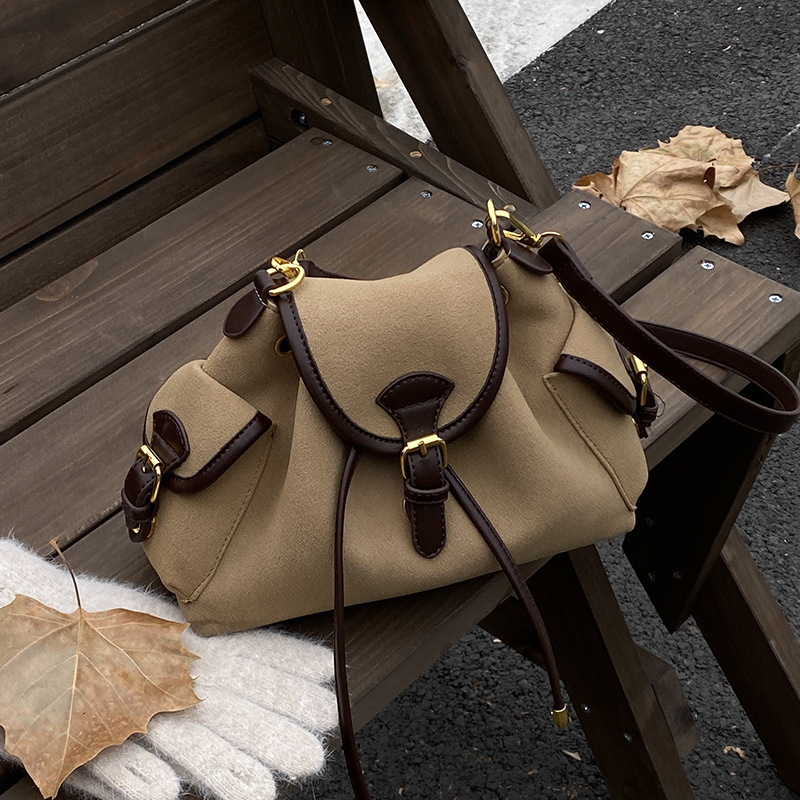 高级感复古麂皮绒小包包女2025新款时尚百搭斜挎包单肩腋下水桶包