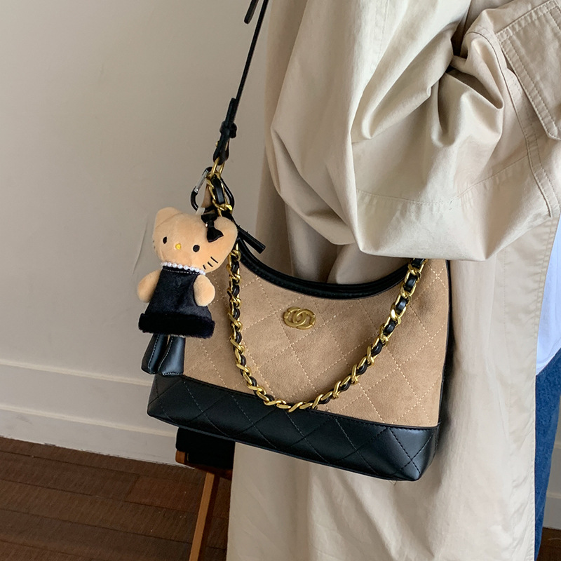 复古小众麂皮绒包包女2025新款菱格百搭斜挎包时尚撞色单肩腋下包