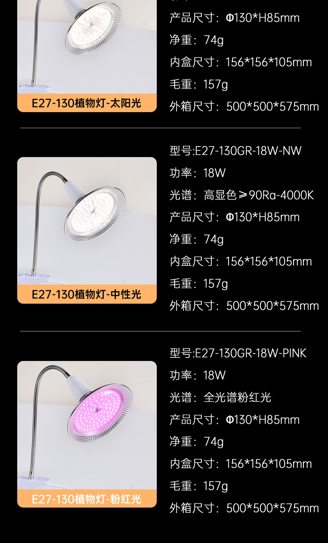 パワー 18W-ニュートラルライト 4000K,18W-ピンクライト,18W フルスペクトル太陽光,三脚 + E27 ランプヘッドにはランプは含まれません,クリップランプヘッドにはランプは含まれません,吊り下げランプヘッドにはランプは含まれません