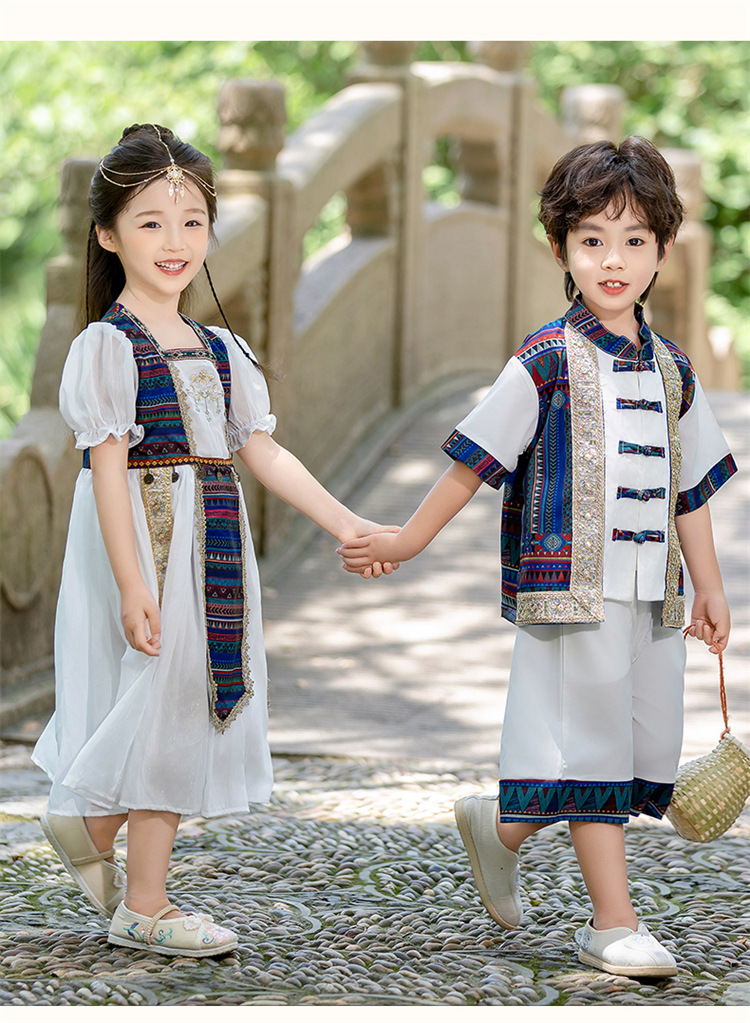 子供用漢服、女の子用ドレス、エスニック風パフォーマンス衣装、男の子用エスニック衣装、幼稚園ダンスパフォーマンス