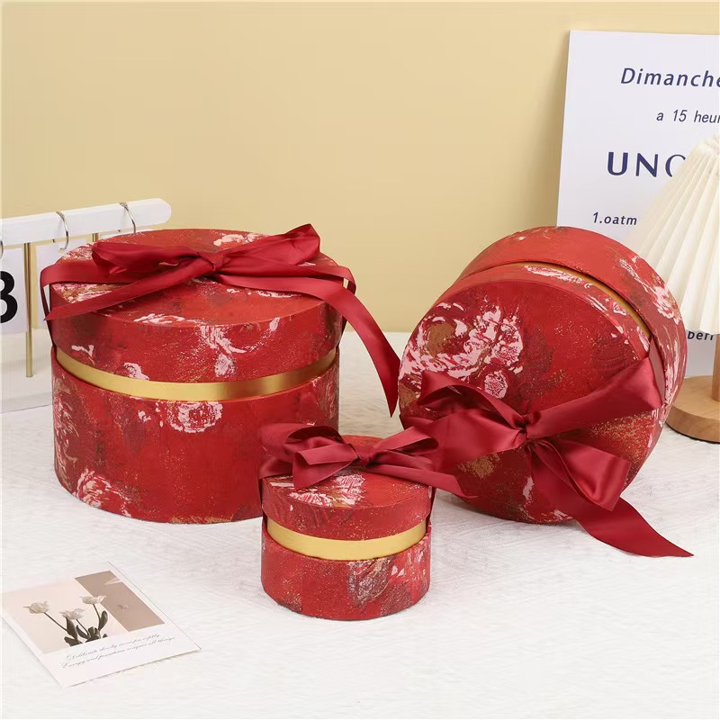 新しいネット赤ins円形喜糖箱お土産箱リボン壁紙小紅本おすすめ