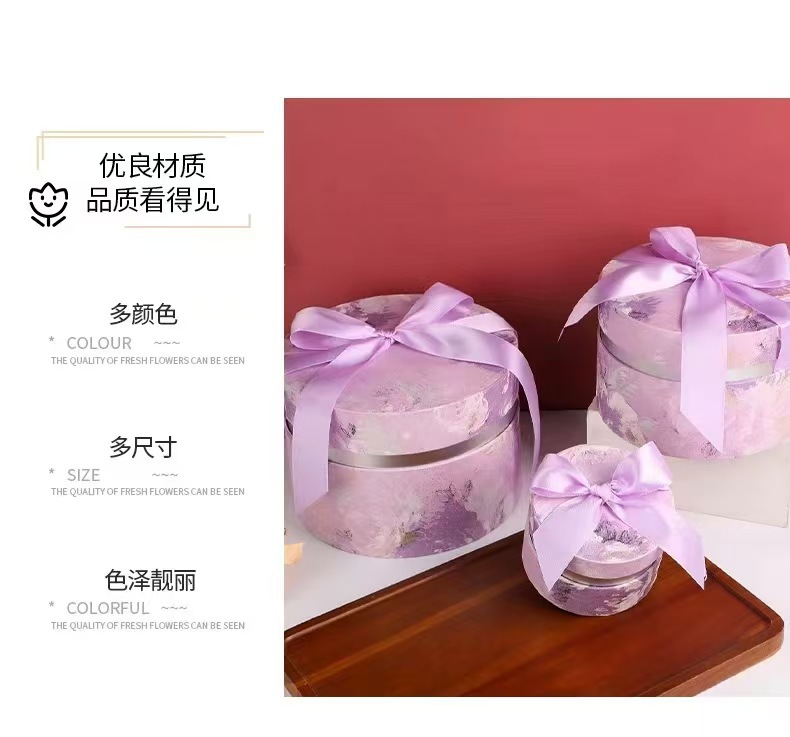 ヨーロッパとアメリカの油絵スタイルのポータブルギフトボックス、花婿の付添人、ブライズメイド、ギフトボックス、結婚式のお祝いハグバケツ、丸い箱、空箱
