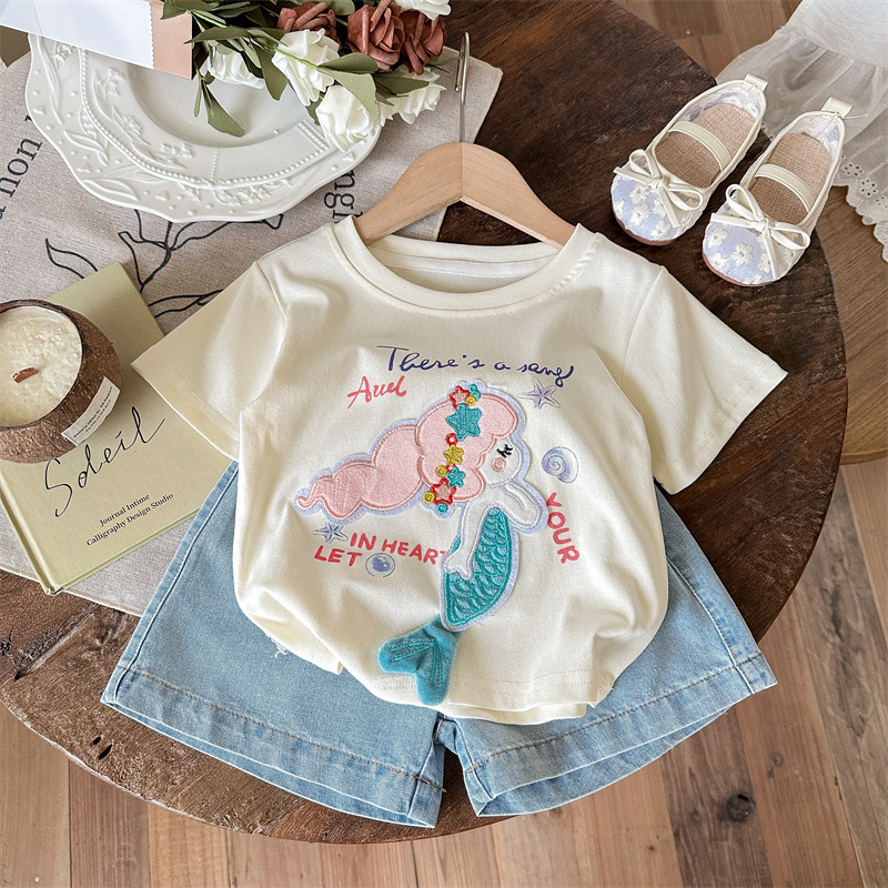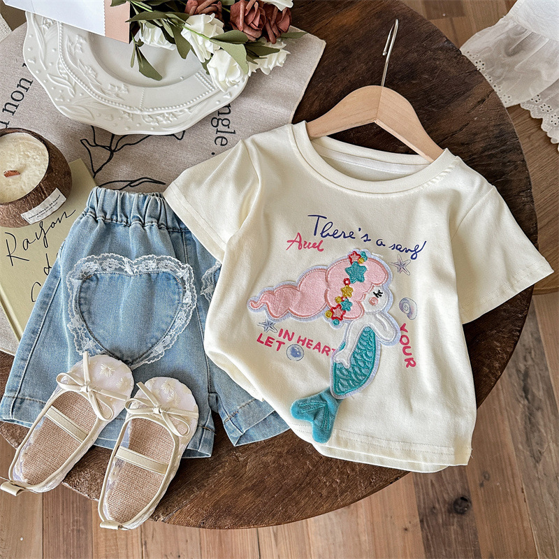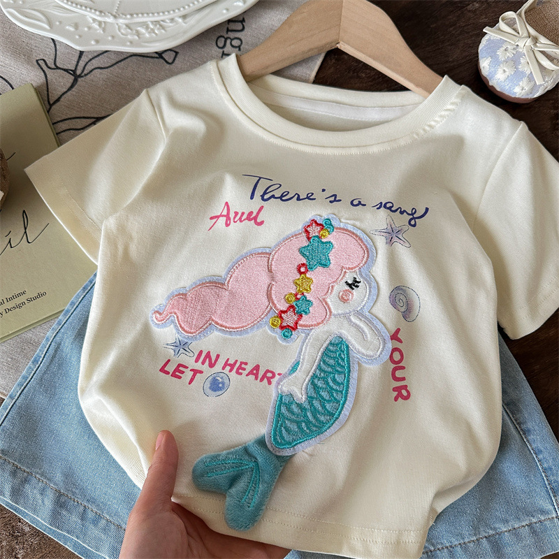 小さな塩辛いレモンガールズ半袖Tシャツ夏の赤ちゃん新しいスタイルの漫画人魚姫子供用カジュアルトップス
