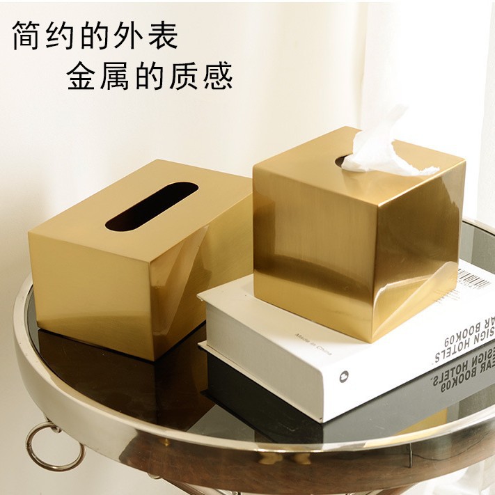 金属のティッシュの箱の客間の家庭用の簡単な現代の北欧のinsの風の軽い高級な真鍮の色のナプキンの引き出しの箱