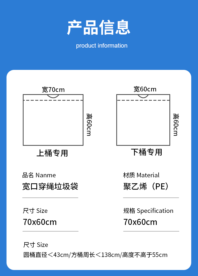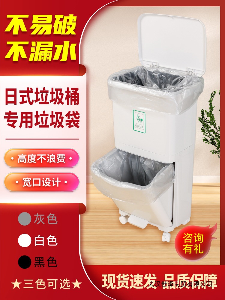 日式双层垃圾桶垃圾袋家用特厚厨房平口式38升宽口70×60大号45升