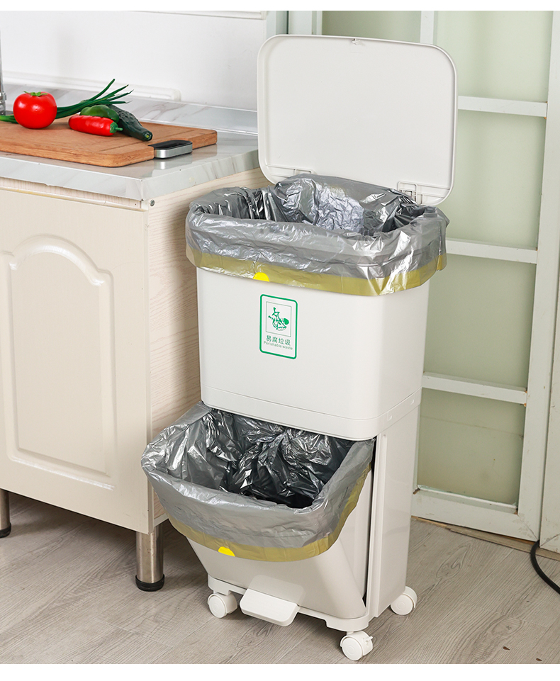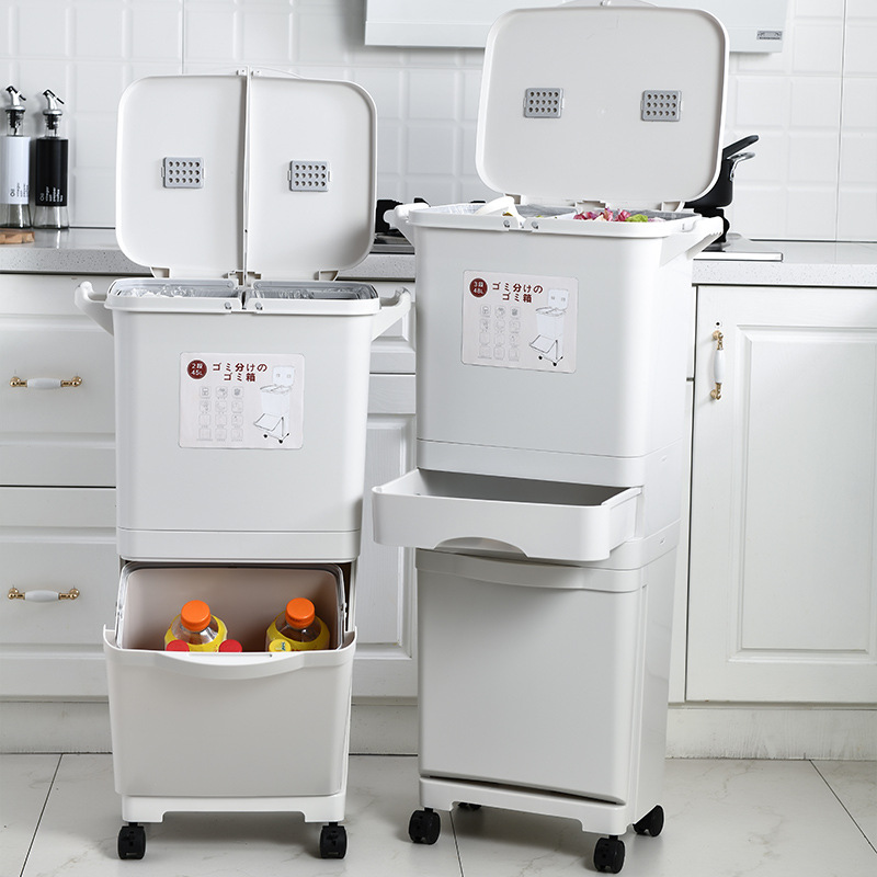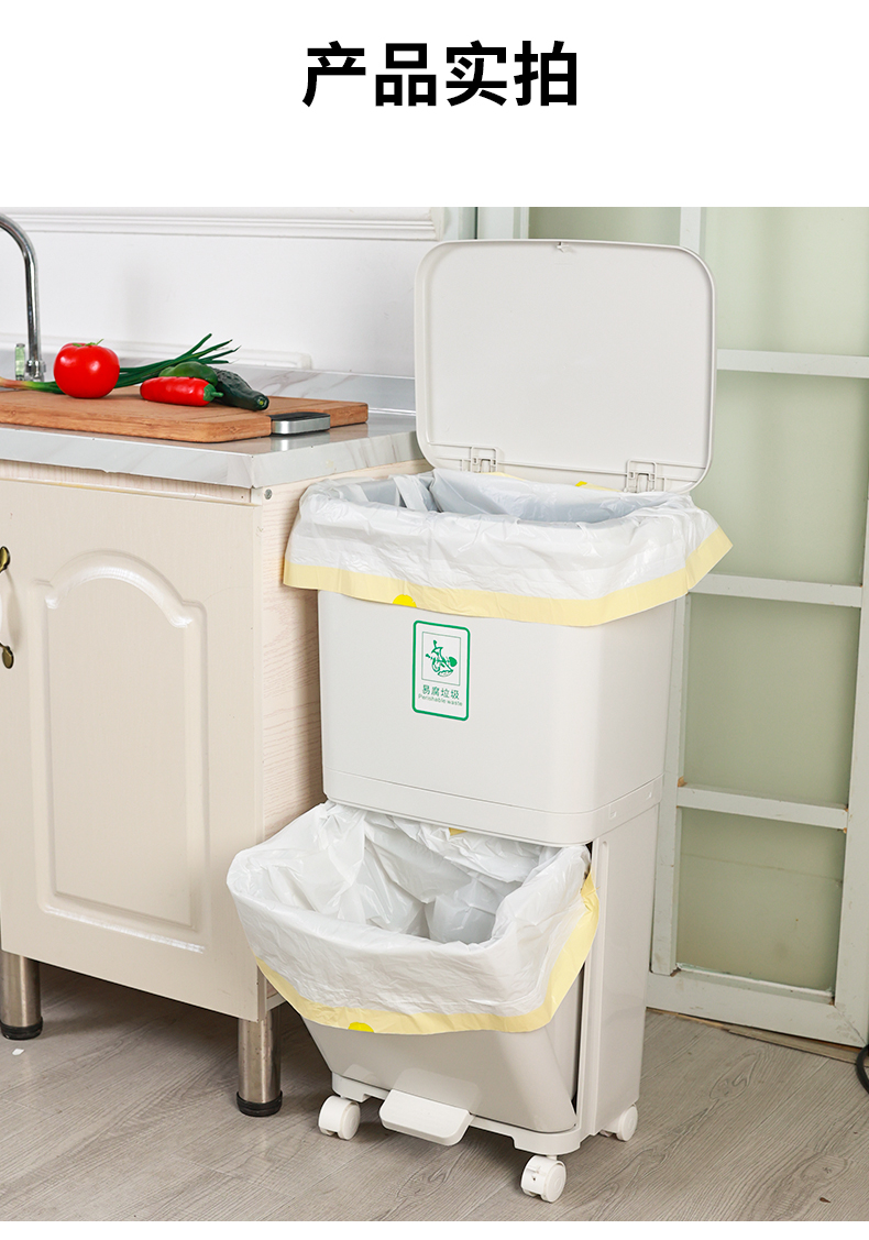 严选厨房垃圾桶多层一体免弯腰干湿分离家用大号带盖可移动收纳筒