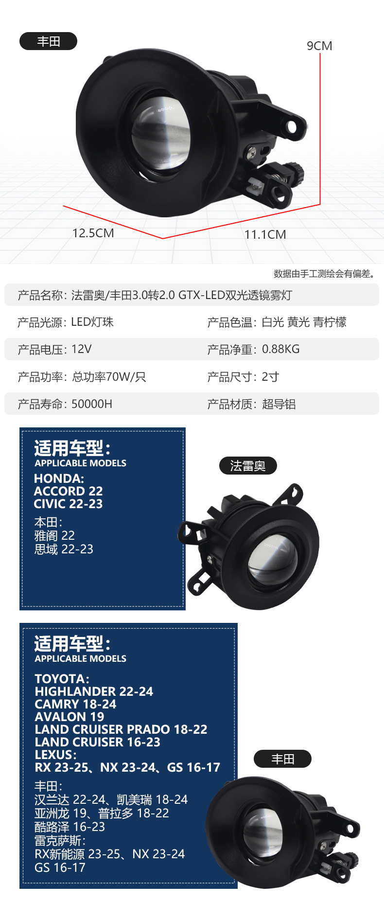 専用車 トヨタ ユニバーサル カローラ シエナ プリウス ヤリス ヘッドライト 2inch LED ダブルライト フォグランプ レンズ