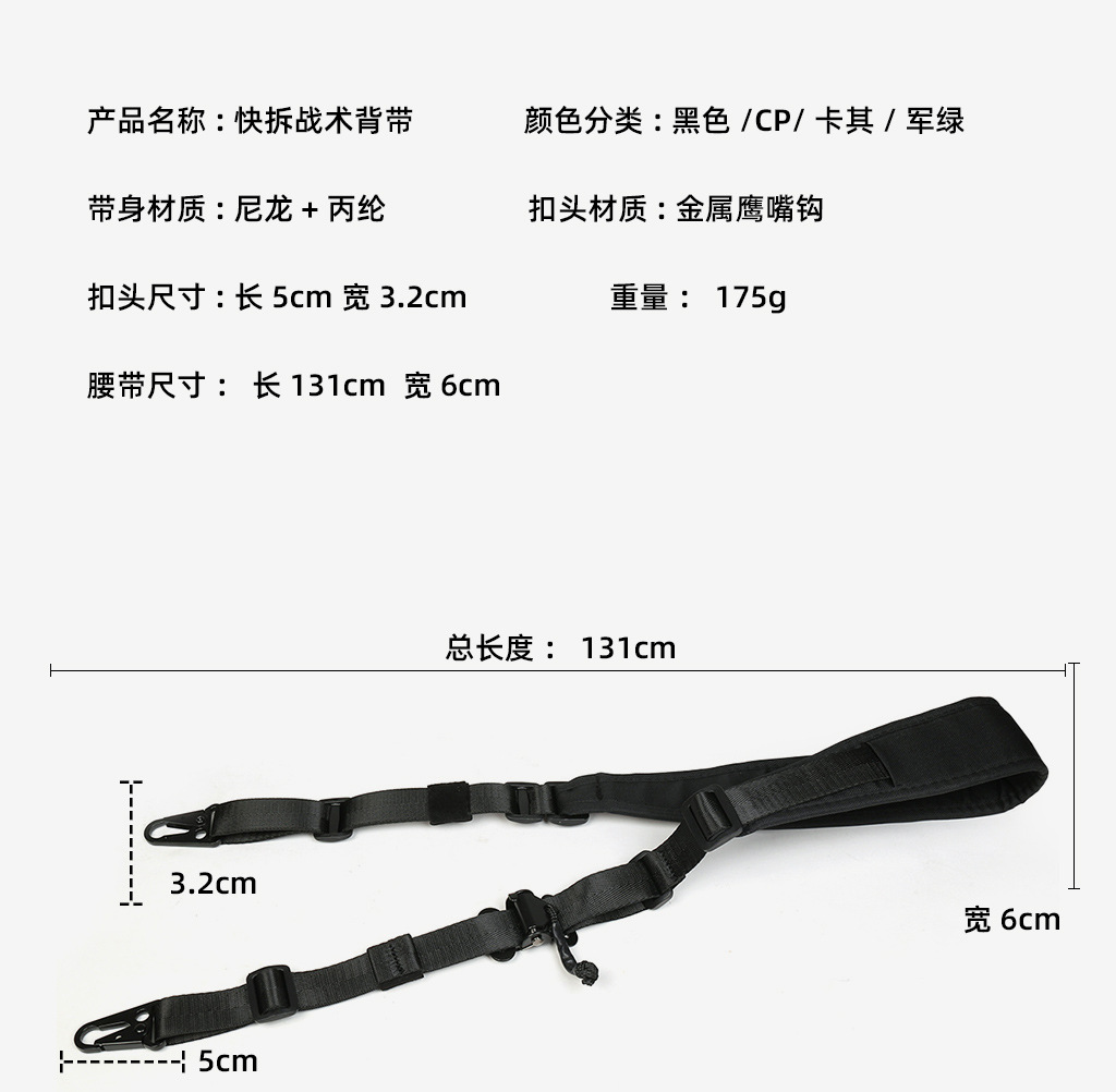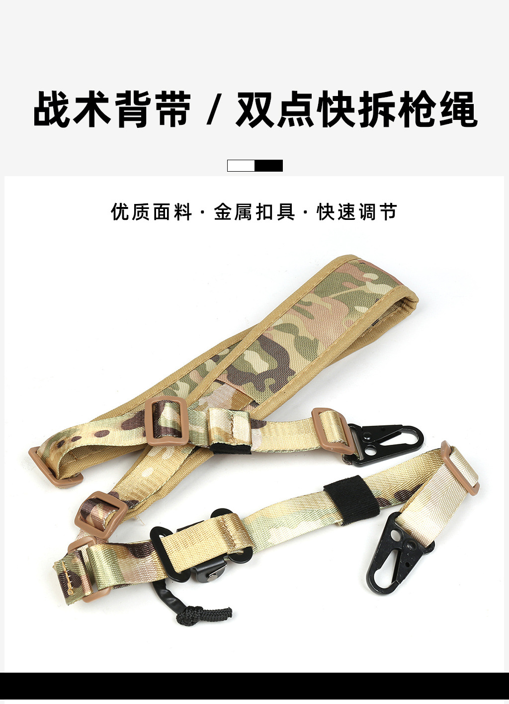 アメリカ風ダブルポイント合金タクティカルストラップ、ミリタリーファン向けアウトドア戦闘リアルCS斜め掛けガンストラップ、在庫あり
