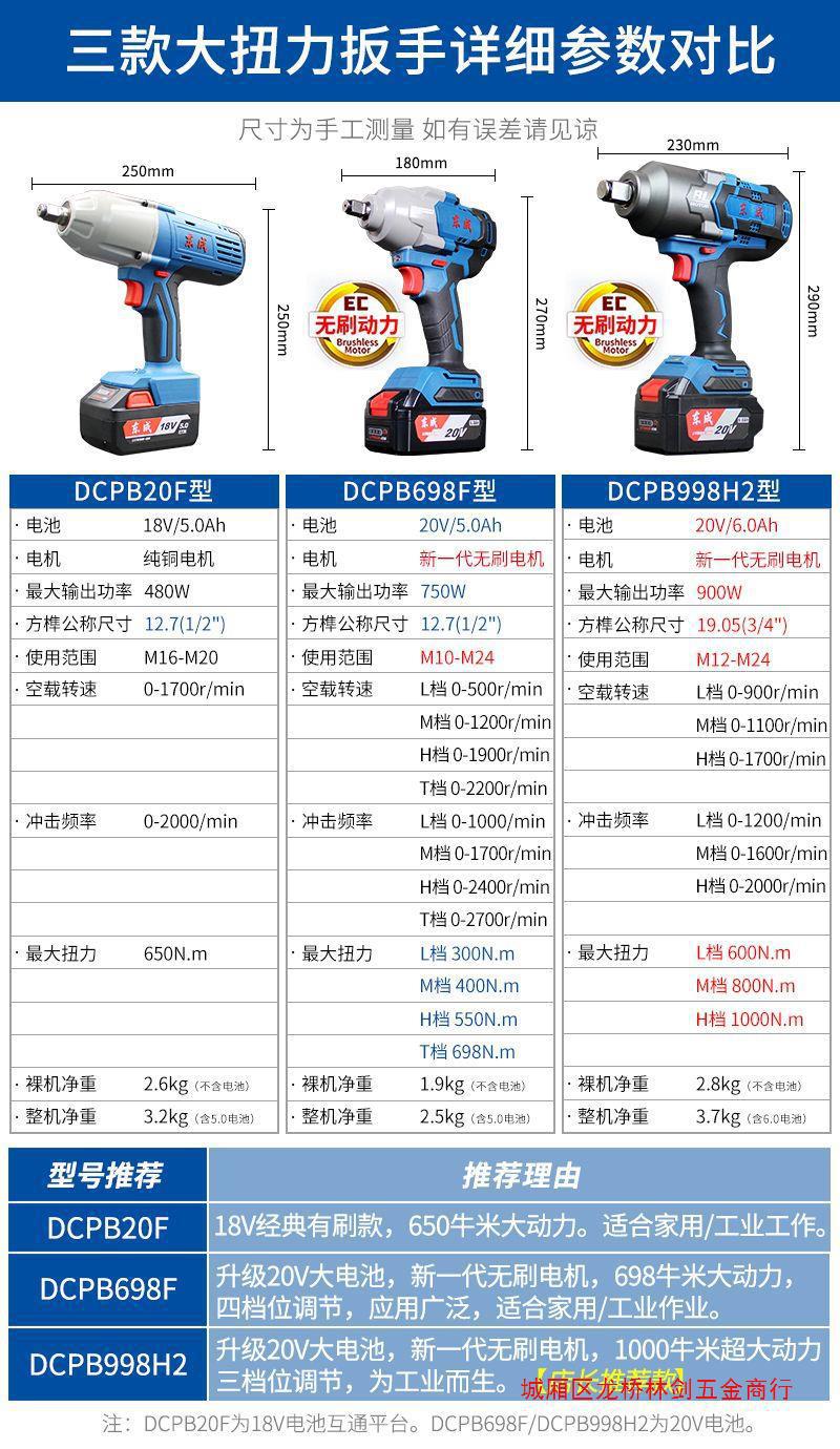 東城電動レンチ高トルク DCPB998H2 自動車修理リチウム電動レンチ東城ブラシレス充電式インパクト風力砲