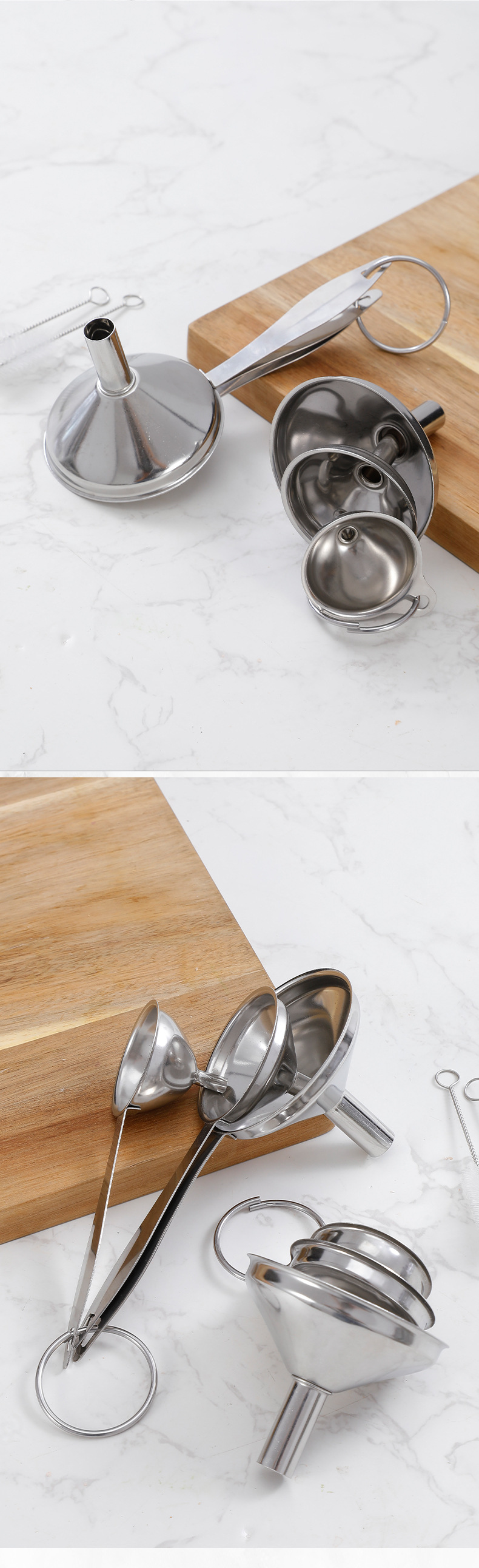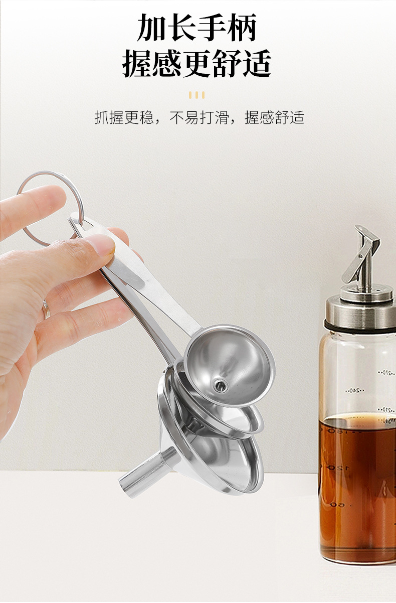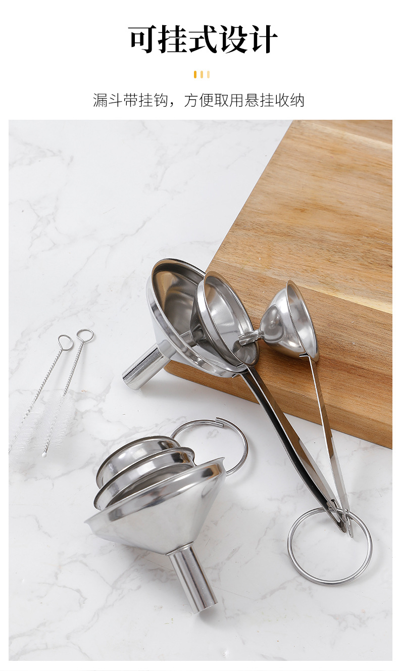 ステンレス漏斗三点セット吊り式家庭用台所逆油器大トランペット酒漏斗吊提子酒器スプーン