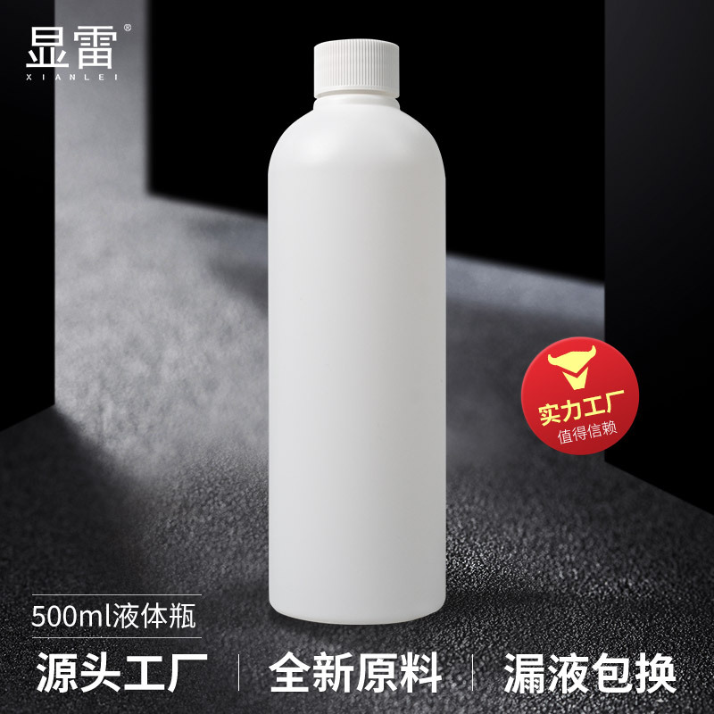 HDPE丸型ボトル、スクイーズボトル、500ml丸肩ボトル、ミリリットル単位の低くて太い詰め替えボトル、液体用プラスチックボトル
