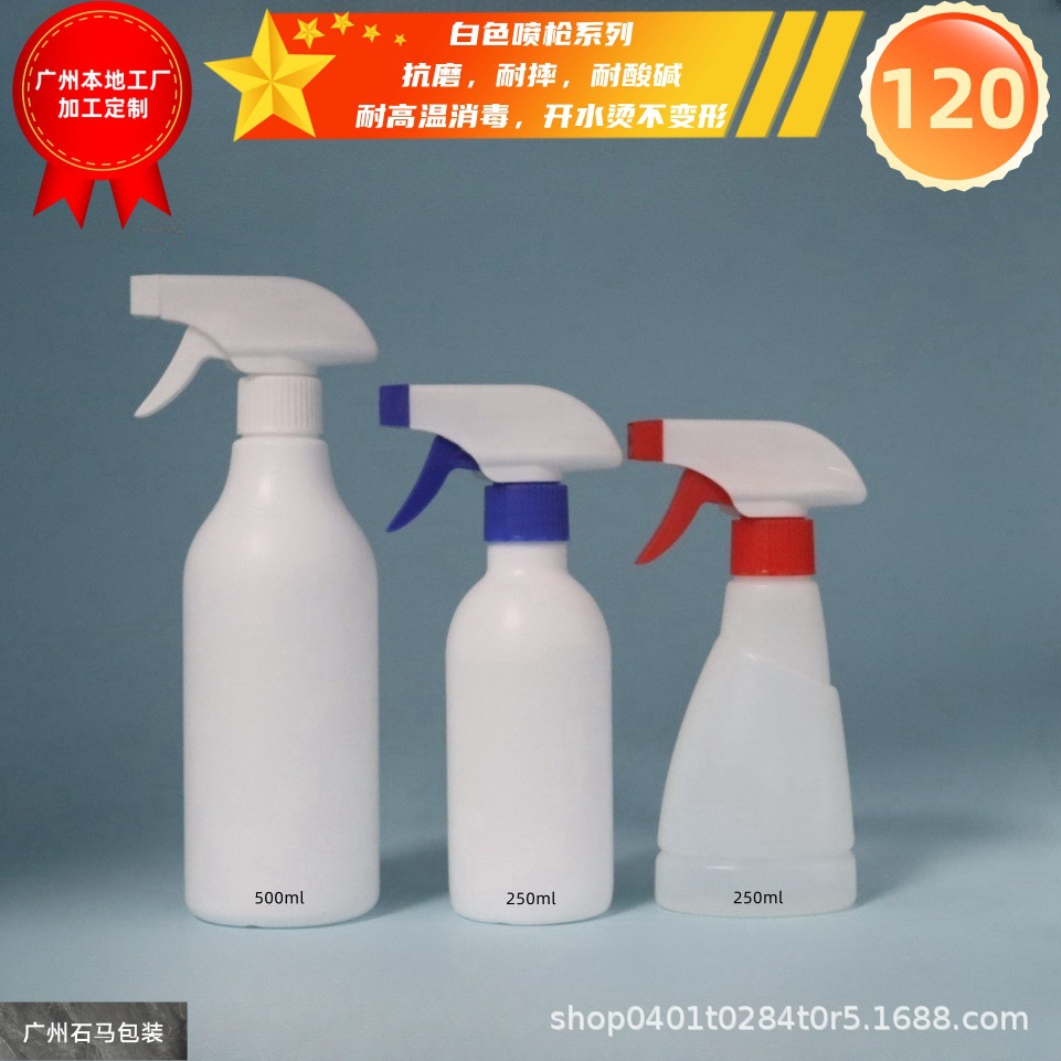メーカー在庫あり 白色丸肩スプレーガンボトル HDPE素材 容量300-1000ML プラスチックボトル