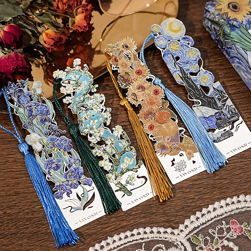 ゴッホのシリーズの油絵の透かし彫りのしおりに出会います。